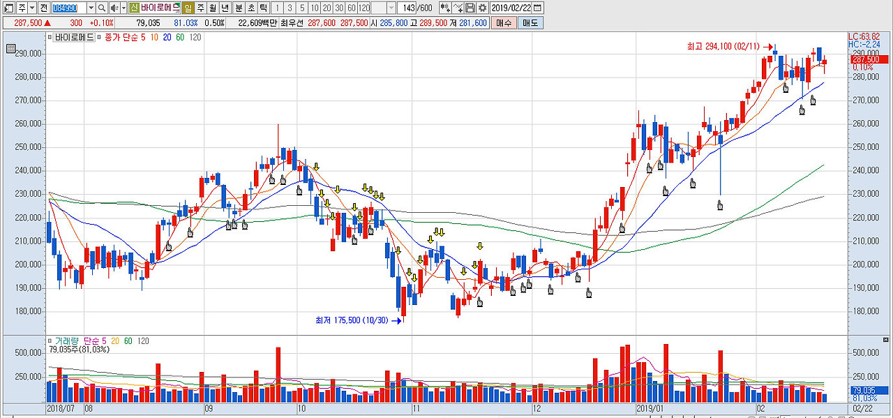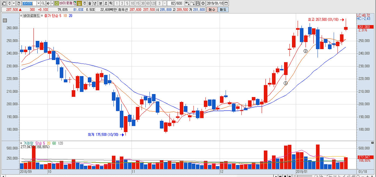 최근 상승을 보이고 있는 바이로메드 입니다.