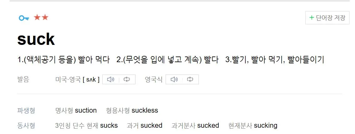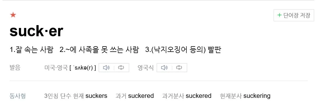 그러면.... suck 빨기라는 단어에 er을 붙이면.....뜻이 어떻게 되는걸까..........