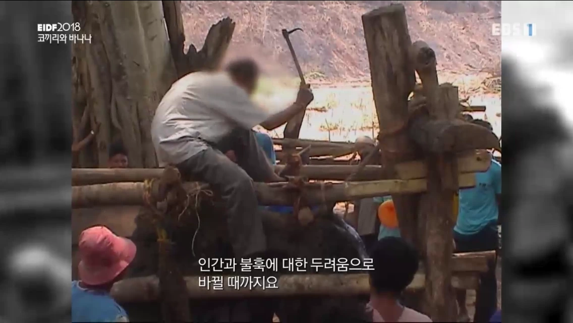 EBS국제다큐영화제 상영작 <코끼리와 바나나>는 태국에서 벌목이나 트레킹, 코끼리 쇼 등에 동원되는 아시아 코끼리의 현실에 주목한다. 코끼리들은 관광 산업에 이용될 수 있도록 모진 훈련과 학대를 받는다. '크러쉬 박스(crush box)'라 불리는 작은 우리에 갇혀 쉴 새 없이 맞고 '불훅(bullhook)'으로 고문 당하며 야생성을 잃어 간다.