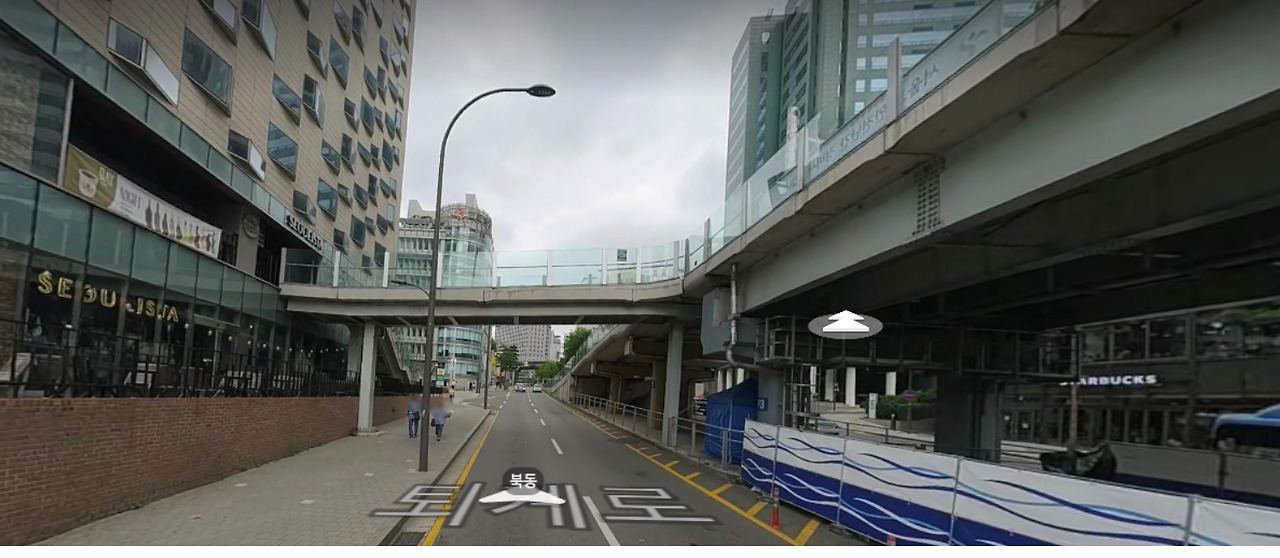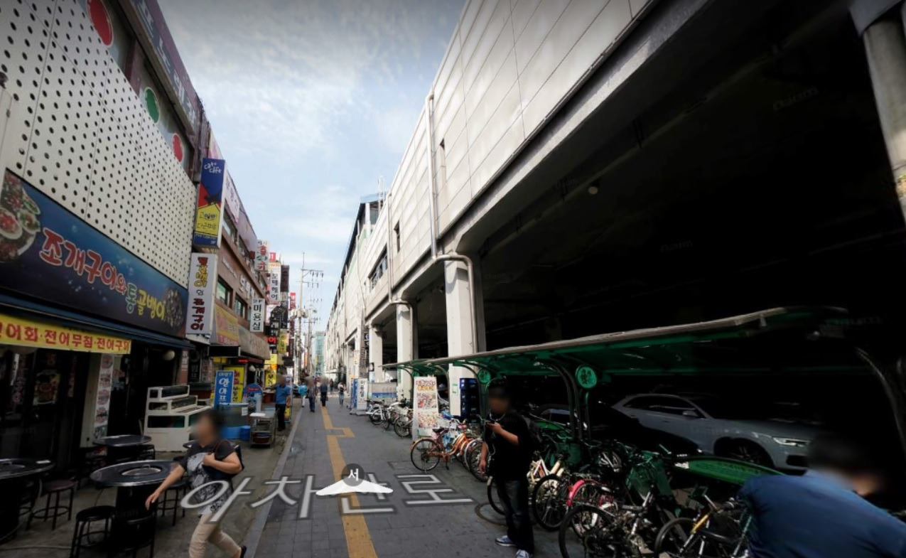 건대입구역: 지상철과 인접한 건물때문에 좁고 답답한 느낌이 든다. (출처: 카카오맵 로드뷰)