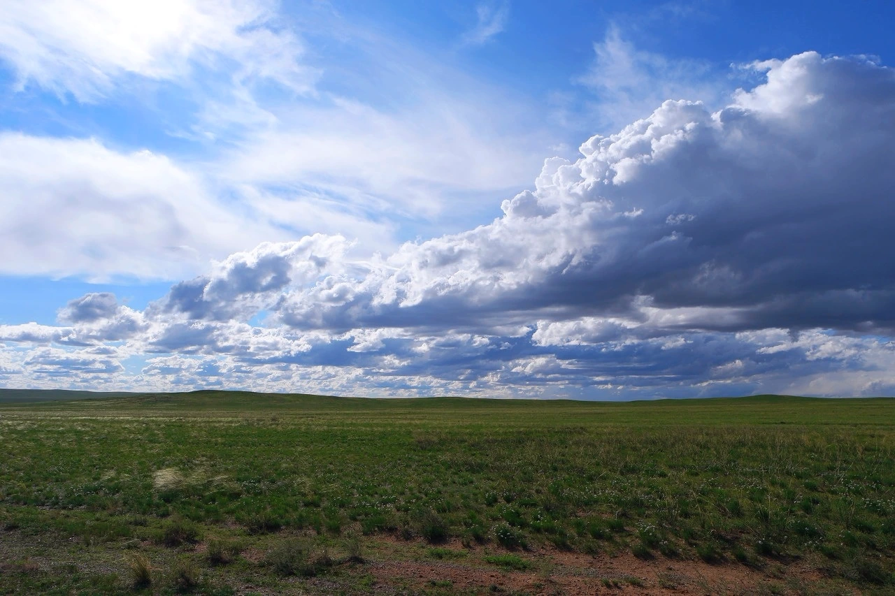 해를 받고 있는 구름의 머리와 그 아래 그늘진 구름의 바닥까지 보인다. 구름은 언제나 3D였는데, 오늘에서야 정말 3D로 보는 느낌이다. 가끔은 저것이 구름인지, 눈 덮인 산인지도 말하기 모호한 구름, 후지산을 방불케 한다. 표현이 어려울 정도로 아름다운 풍경을 막장 드라마 OST 같은 몽골노래를 들으며 달리는 중이다.