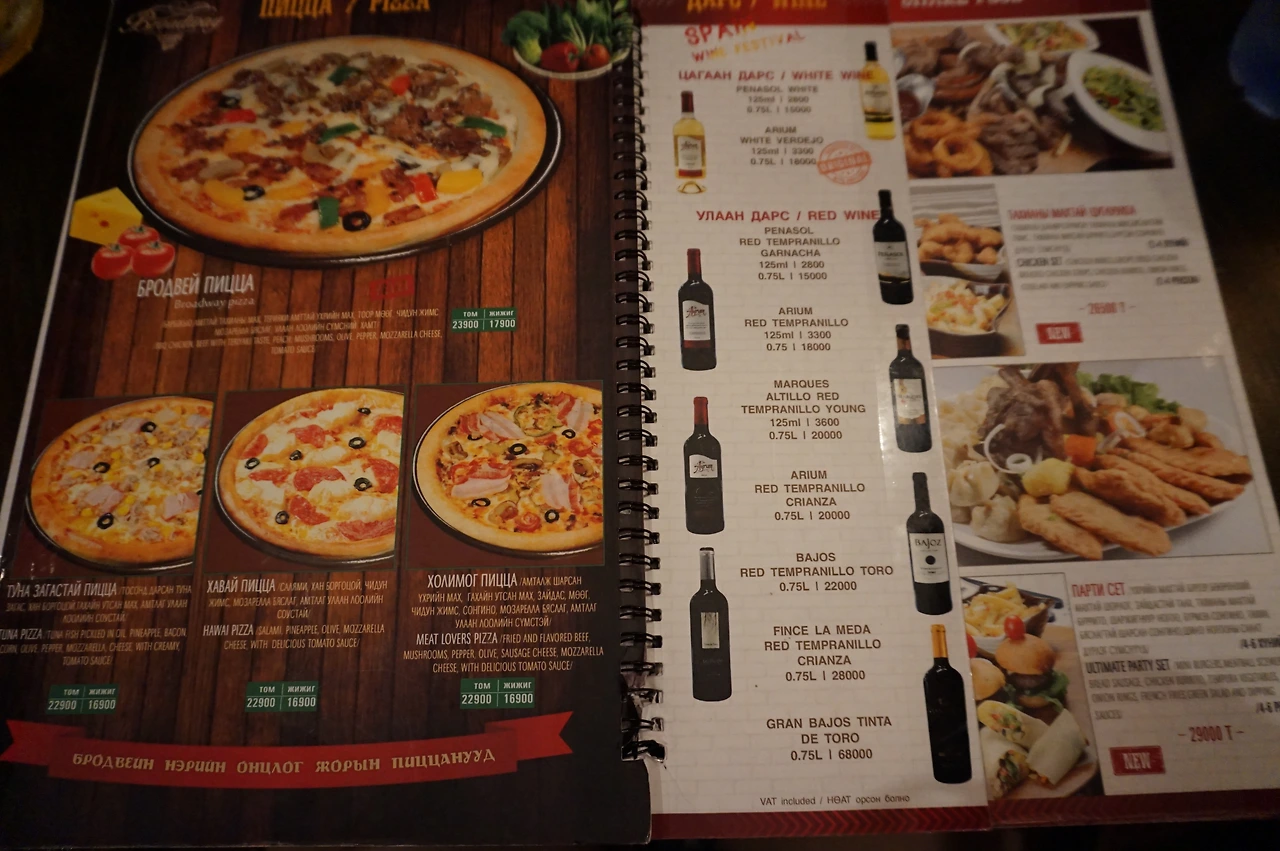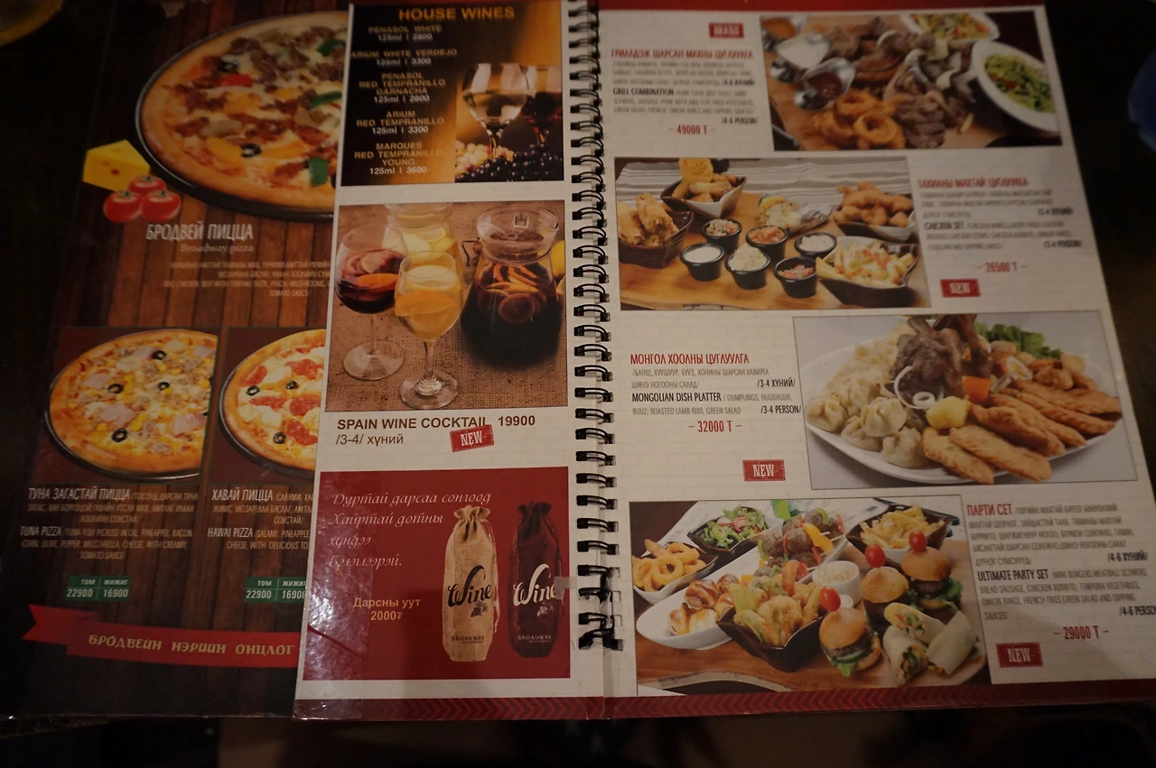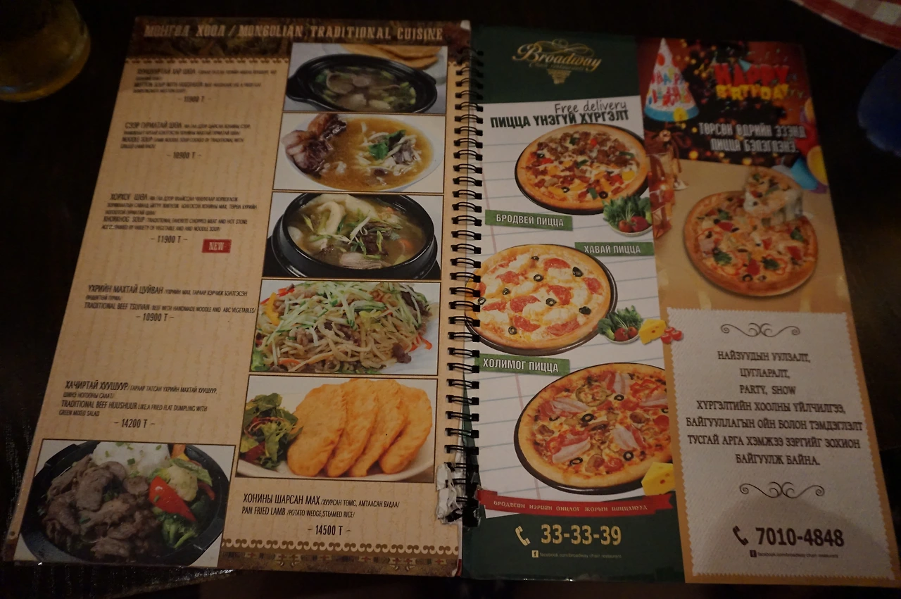 문명의 음식을 접해보기 위해 울란바타르에서 1키로 간격으로 있는 것 같은 브로드웨이 체인점에 왔다. 다양한 술, 디저트, 식사가 가득하다. 그중 피자와 맥주, 샐러드를 골라 처음이자 마지막 사치를 감행했다. 생애 먹어본 피자 중 탑에 들었던, 혹은 그런 환상에 젖게 했던 피자였다.