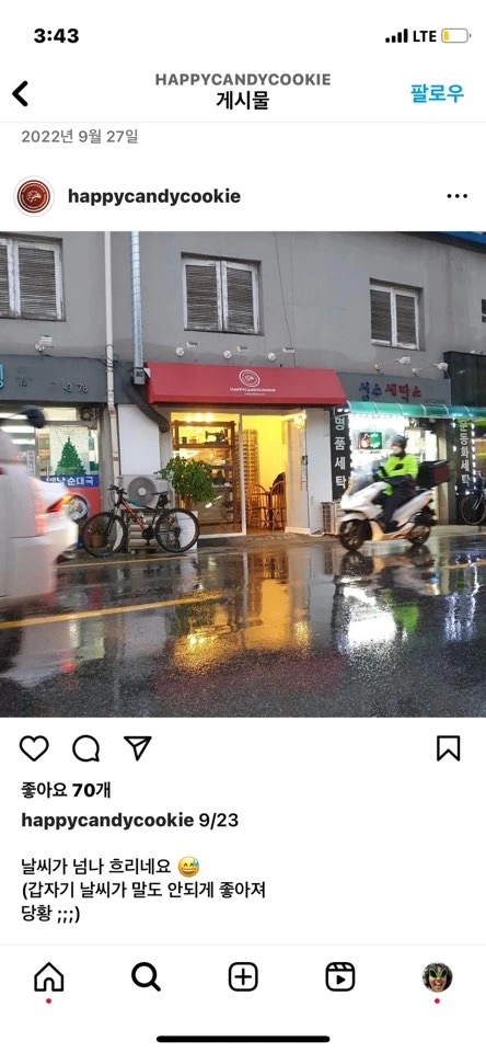 이런저런 생각을 하며 구길을 돌아다니고 있는데, 닫혀있는 가게가 하나 보였다. 가게 이름을 인스타에 검색해 보니 '해피캔디쿠키'라는 쿠키집이었다. 인스타를 보니 올해 초부터 운영을 중단한다는 게시글이 올라와있었다.