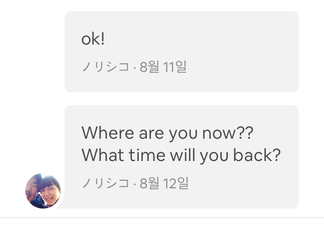 "Where are you now? What time will you back?"