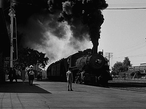 <의혹의 그림자>에는 두 명의 ‘찰리’가 나온다. 범죄자로 진짜 이름을 숨긴 채 여기저기를 떠도는 삼촌 ‘찰리’와 그런 삼촌에게 절대적인 신뢰를 보내는 조카 ‘찰리’, 같은 이름을 가진 찰리가 만나는 장면은 이후 이어질 사건과 긴장의 발화가 시작되는 지점이다. 지루한 일상에서 벗어나 자신을 즐거움으로 인도해 줄 유일한 사람이 삼촌 찰리라고 굳게 믿고 있는 조카 찰리의 들뜬 인상이 극대화되는, 삼촌 찰리가 기차에서 내려 고향 땅을 밟는 장면이 그것이다. 하지만 히치콕은 이 행복한 장면에서 밝고 경쾌하게 마을에 도착하는 기차의 모습을 보여주는 대신 검은 연기를 뿜는 무시무시한 모습(혹은 대상)의 기차를 보여준다. 할리우드 고전 중 많은 영화들이 로드무비에서 '기차'라는 존재를 경쾌하고 발랄한 음악과 함께 묘사하곤 했지만 히치콕은 기차를 도망과 살인, 음모 등 부정적인 존재로 사용하는 것을 즐겼다. 이것의 전형이 바로 <의혹의 그림자>의 삼촌 찰리가 마을에 도착하는 장면이다. 삼촌 찰리가 탄 기차가 기차역에 다다르자 맑고 화창하던 날이 일순 재앙이 뒤덮인 것처럼 바뀌게 되고, 조카 찰리는 이런 불행의 도착을 정면으로 마주한다. 이 장면을 통해 관객들은 조카 찰리의 들뜬 기분이 곧 산산이 부서져 버릴 것을 직감하는 동시에 삼촌 찰리와 조카 찰리의 충돌을 사실을 예상할 수 있게 된다.