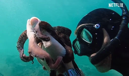 넷플릭스에는 올해도 빼어난 다큐멘터리들이 많이 나왔다. 그들 모두를 보진 못했지만, 여하튼 나름 힘써 달려보았으니 그중에 하나를 꼽자면 단연 <나의 문어 선생님>이어야 한다는 생각이 든다. 절대다수를 만족시킬 수 있고, 엄청나게 감동적이고 교훈적이기까지 한 이 다큐멘터리를 사랑하지 않을 수 없다. 말 그대로 '문어 선생님'을 둔 한 인간의 회고다.