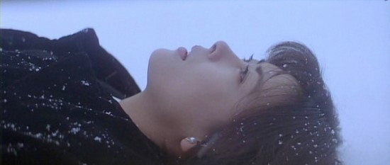 <러브레터>의 메인 포스터 이미지가 되기도 했던 이 장면은 설산에서 조난당한 옛 애인의 죽음을 떠올리며 히로코가 숨을 최대한 참았다가 훅 하고 내뱉는 짧은 순간을 보여준다. 물론 이 장면은 히로코를 비롯해 히로코의 죽은 애인 후지이 이츠키와, 그의 동명 동창인 또 다른 후지이 이츠키(여자/1인 2역)에 관한 이야기가 소개되기 전이므로 어떤 것을 함축하고 있는지 단번에 알아차리기 불가능한 장면이다. 그럼에도 불구하고 이 장면이 가장 인상적이었던 이유는, 영화가 클라이맥스를 지나 죽은 후지이 이츠키의 옛 사랑을 거의 모두 드러냈을 때, 그제서야 한꺼번에 몰려오는 히로코의 상실감이 이 첫 번째 시퀀스와 맞물리기 때문이다.