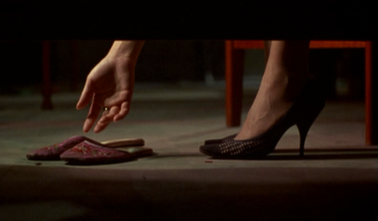 영화의 후반부, 차오와 리첸이 헤어지고 차오는 예정대로 싱가포르로 떠난다. 이후 리첸이 싱가포르를 방문하는데, 리첸은 차오가 집을 비운 사이 차오의 집에 들어가 어떤 물건을 가지고 나온다. 차오가 리첸과의 이별 후에 가져온, 그리고 리첸이 신기도 했던 슬리퍼다. 리첸은 차오의 공간에 잠시 머물다가 집을 떠나기 직전, 차오의 슬리퍼를 가지고 나온다. 마치 리첸이 아직까지 남아있는 차오의 리첸에 대한 감정을 거두어들이는 듯, 그리고 그녀 자신도 남아있는 감정을 완전히 발화시켜버리려는 듯, 어찌 보면 굉장히 이기적인 한 여자의 결단을 보여주는 장면이다. 굉장히 짧지만 과거의 감정에 대해 대처하는 옛 연인들의 올바른 클리셰로 사용되었던, 인상적인 장면.