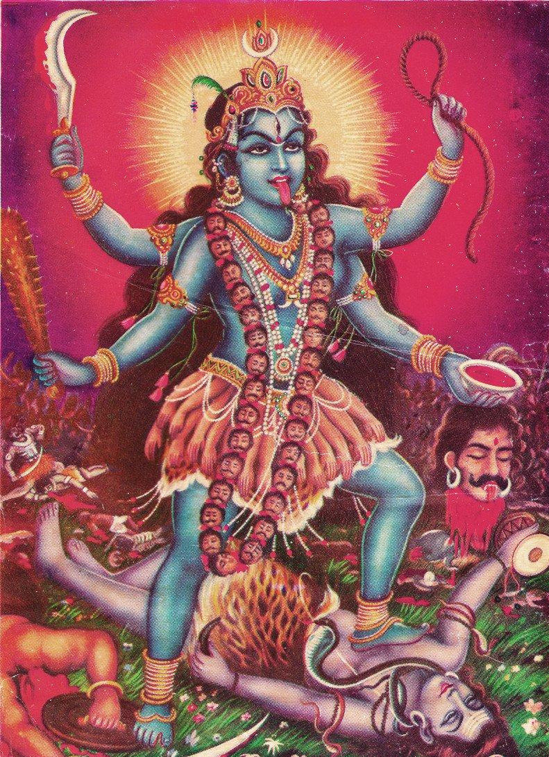 깔리는 본래 쉬바의 배우자 중 하나이지만, 인도 신화에서 거의 유일하다 싶을 정도로 독보적인 존재를 굳히는 여신이다. 깔리는 두르가(Durga)라는 이름으로 불려 지기도 하는데, 그녀의 ‘악함’은 상상을 초월한다고 한다. 깔리는 전형적인 힌두의 팜므-파탈로 자신의 목적을 위해 모든 신, 특히 남신들을 이용하는 것으로 유명하다. 대부분의 신들이 온화한 이미지로 그려지고 있는 반면 깔리는 무시무시한 이미지로 표현되고 있다. 주로 악마를 물리치는 강한 성향을 가지고 있는 깔리이지만 그녀의 파괴성덕분에 많은 사람들은 최후의 수단으로 그녀를 찾아가곤 했다. 다른 여신들처럼 깔리는 가사를 돌보지도 않고 특출한 아름다움, 그리고 온화함을 지니고 있지도 않다.