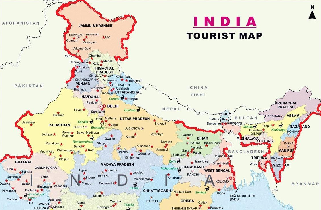 인도는 왼쪽으로 파키스탄, 북쪽으로 네팔과 중국, 동쪽으로 방글라데시와 미얀마(버마) 등의 국경을 맞대고 있다. 이들 국경은 유럽처럼 자유롭게 오갈 수 없으며 비자가 반드시 필요하다. 특히 인도 최북단의 잠무&카쉬미르 주에서 여행자들이 많이 찾는 곳인 스리나가르와 인도-파키스탄 국경이 있는 아타리(인도령)-라호르(파키스탄령)주는 무슬림과 힌두의 충돌이 잦은 곳으로 이 곳을 여행할 때는 사전 정보를 숙지하고, 이동 전에 해당 지역에 큰 사건은 없었는지 뉴스를 충분히 찾아보는 것이 좋다. 인도를 벗어난 파키스탄보다, 오히려 인도 내의 스리나가르의 정세가 불안정할 때가 많다.