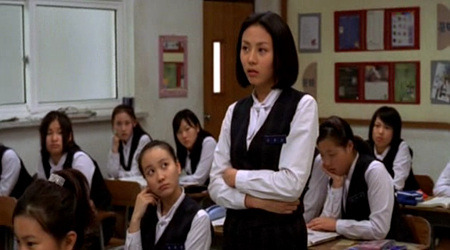 <여고괴담 두 번째 이야기>는 <여고괴담>의 성공에 기대어 만들어진 후속 편이지만, 이 영화 이후 나온 '여고괴담'의 다른 시리즈들과는 전혀 다른 성질의 영화로 취급되어오고 있다. 작품의 완성도보다 이 영화가 가지는 상징성이 다른 '괴담' 시리즈들과는 판이하게 다른 것이었기에 <여고괴담 두 번째 이야기>는 공포 연작이 아닌 독립된 하나의 장르 영화로 평가되지 않았을까 싶다. '공포'라는 탈을 쓰고 있지만 사실 불온하거나 불완전한 여고생들의 이야기인 동시에 쉽고 빠르게 비이상적이고 철학적인 것을 받아들이고 배설해내는 십 대들의 이야기다. 효신(박예진)의 자살로 인해 관객은 일순 공포의 촉각, 즉 전작 <여고괴담>에서 기대되었던 긴장감과 섬칫함을 곤두세우지만 사실 그것이 이 영화의 주된 미학은 아니다. <여고괴담 두 번째 이야기>의 진짜 내러티브는 효신의 투신 직전까지 세 여고생 사이를 끈질기게 싸고돌던 사랑과 질투, 분노와 같은 원초적인 감정들이 상징적인 몇 가지 소재를 통해 분출될 때 보인다. 빨강과 파랑, 물과 불로 대비되는 극단적인 상징의 장면들, 그리고 시종일관 학교를 압박해오는 하이앵글숏들과 더불어 이 영화가 저지른 가장 커다란 실수인 결말 부분, 효신의 시점 쇼트까지 모든 것들이 기이하게 뒤엉켜 '공포'와 거리가 먼 영화를 사이버 펑크의 느낌으로 끌고 나간다. 풋풋한 배우들이 연기하는 여고생의 불안한 캐릭터들은 이를 멋지게 뒷받침해준다.