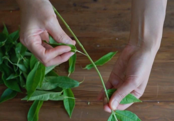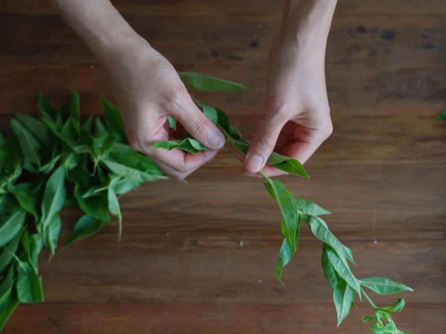 꽃집에서 산 꽃은 이미 손질이 되어 있어 잎을 떼어내는 과정은 생략해도 됩니다. 손질되지 않은 꽃을 샀다면 물에 잠기게 될 줄기 부분에 달린 잎을 모두 떼어내주세요. 잎을 하나 하나 떼어내도 되고, 저처럼 성격이 급한 사람은 한 손으로 줄기를 잡고 다른 한 손으로 잎을 훑어내셔도 됩니다.
