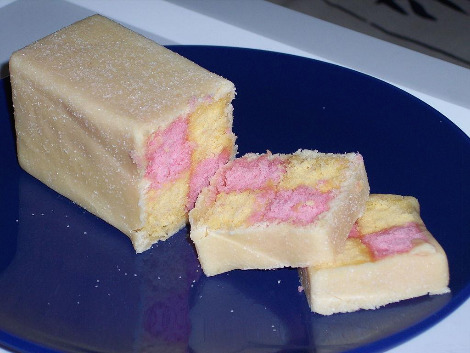 이 케이크는 잉글랜드에서 만들어진 케이크로 추정되긴 하지만 정확히 언제 만들어졌는지 알수 없으며 이 케이크의 이름도 19세기말 레시피등에서 보면 "도미노 케이크 Domino cake"나 "교회 창문 케이크 Church Window cake" 또는 "나폴리탄 롤 Naolitan Roll"등으로 불렸었다고 합니다. 일단 대충 19세기 말 20세기 초에 개발된 케이크로 추정하는 듯합니다.