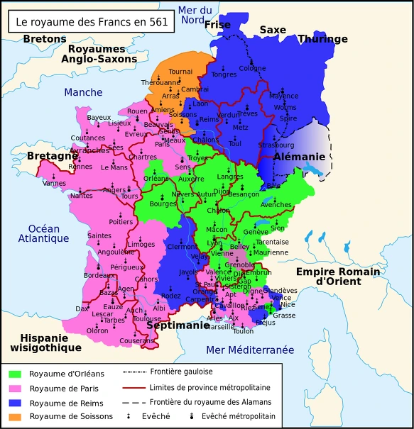 메로빙거 왕가의 첫 국왕은 반은 전설적인 성격을 띤 인물인 메로베(메로베우스)라는 인물입니다. 이 메로베라는 인물의 후손중 하나였던 클로비스가 현재 프랑스와 독일지역 대부분을 통합하면서 거대한 왕국을 형성하게 되었죠. 하지만 클로비스는 이 왕국들을 네 아들들에게 분할해서 분배합니다. 그리고 이 네 아들들은 외부의 부르군트등과 같은 나라와 투쟁을 했지만 동시에 서로의 영지를 차지하기 위해서도 다툼을 했었습니다.