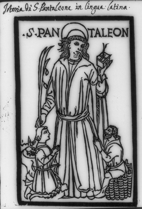 성 판탈레온(또는 판탈레이몬)Saint Pantaleon (Greek: Παντελεήμων, Russian: Пантелеи́мон, romanized: Panteleímon; "all-compassionate")은 303년 디오클레티아누스 황제의 박해로 순교한 인물입니다. 이때문에 많은 성인들이 실존인물인지에 대한 의문을 가지는 경우도 있지만 적어도 성 판탈레온은 그런 의문은 피할수 있습니다. 하지만 많은 성인들의 행적이 전설처럼 남게 되었으며 이 성 판탈레온의 행적 역시 전설로 전해져오는 이야기들이 많습니다.