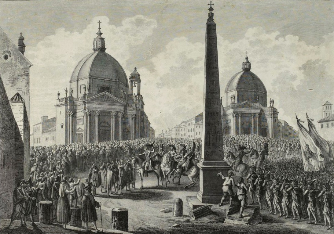 당시 로마를 비롯한 인근 지역은 교황의 통치영지인 교황령이었습니다. 당연히 교황령 내에서도 프랑스에 대한 불만이 있었으며 이것은 1798년 당시 로마에 머무르고 있던 프랑스 외교관인 뒤포 장군의