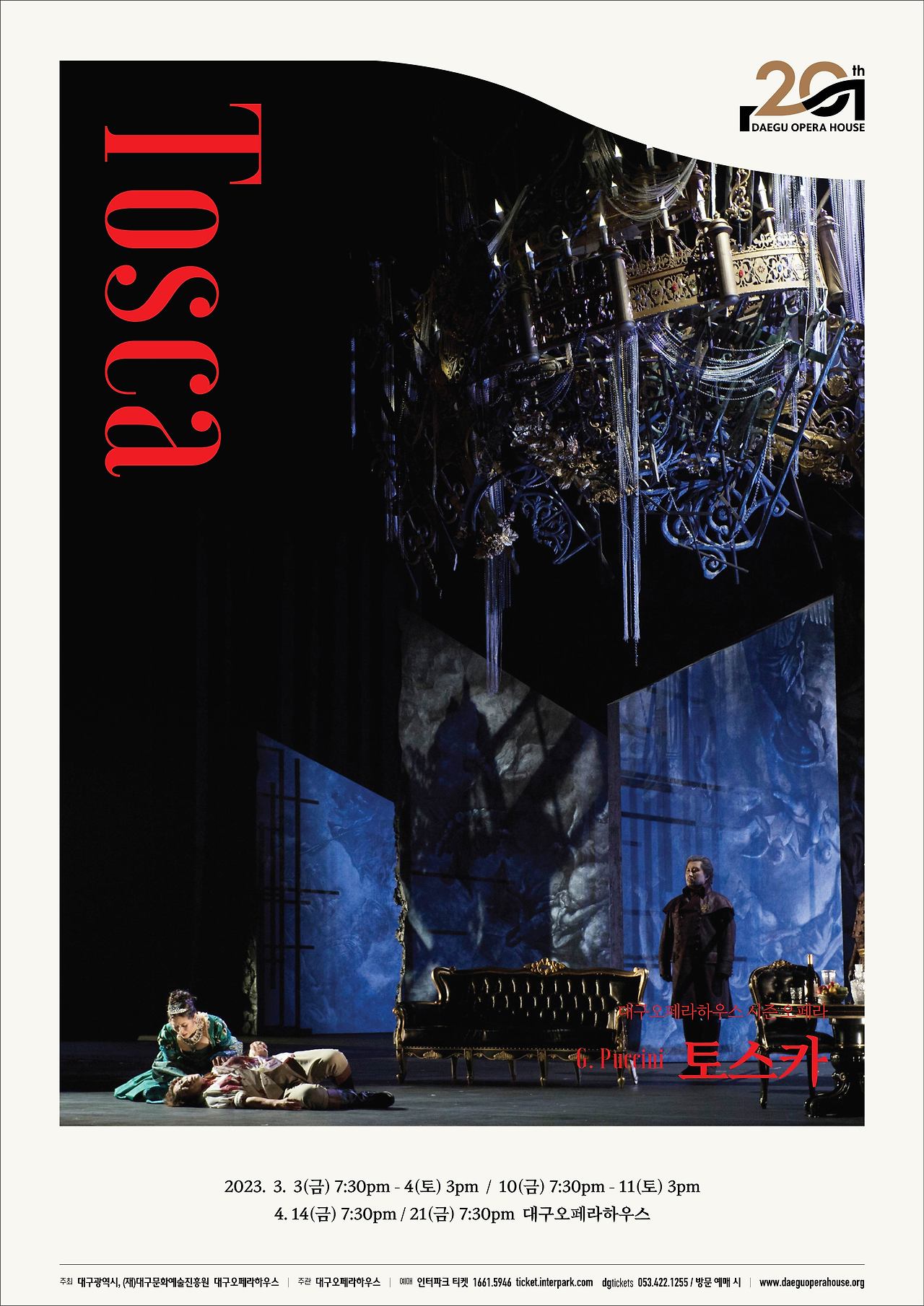 대구 오페라 하우스는 개관 20주년을 맞이하여 시즌 오페라를 공연하고 있습니다. 한번만 공연하는 것이 아니라 주말마다 공연을 하는 것이죠. 그리고 2023년 시즌에 공연하는 오페라중 하나가 바로 푸치니의 오페라 토스카입니다. 3월 한달동안 네번 이 토스카를 공연했고, 4월에도 14일 21일 두번의 공연이 진행될 예정입니다. 사람들의 마음에 깊은 인상을 주는 비극적 이야기를 아름다운 선율로 묘사한 이 토스카를 보시는 것도 좋지 않을까요. ^^