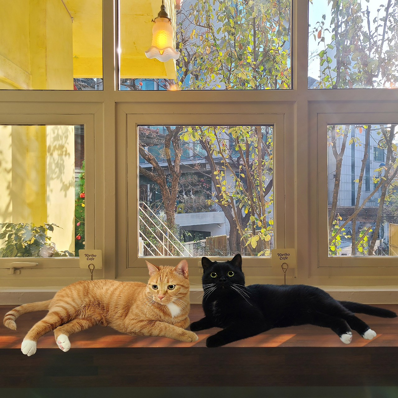 버터를 따라 예쁜 카페에 다녀왔어요. 저희가 가장 좋아하는 창가에 자리를 잡았어요. 카페 손님들이 저희 앞으로 몰려들더니 사진을 찍기 시작했어요. 평소에 예쁜 표정 짓는 연습을 많이 해 둬서 다행이에요.