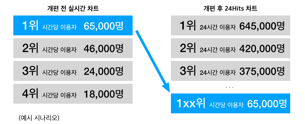 개편된 24Hits 차트는 대중성 지표에 더 가까워졌다.