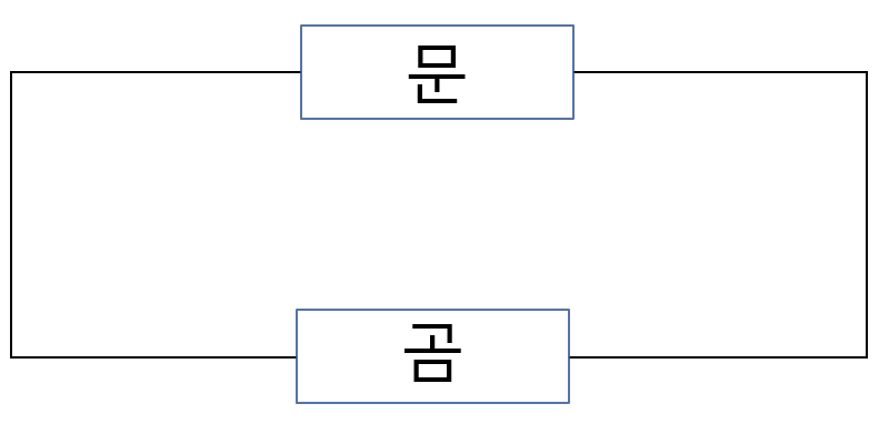 네모난 방을 그리고 문을 두 개 만든 후 위쪽 문에 '문'이라고 썼다. 종이를 180도 돌려서 똑같이 '문'이라고 썼다. 위 아래로 문이 하나씩 생긴 것이다. 친구에게 물었다.