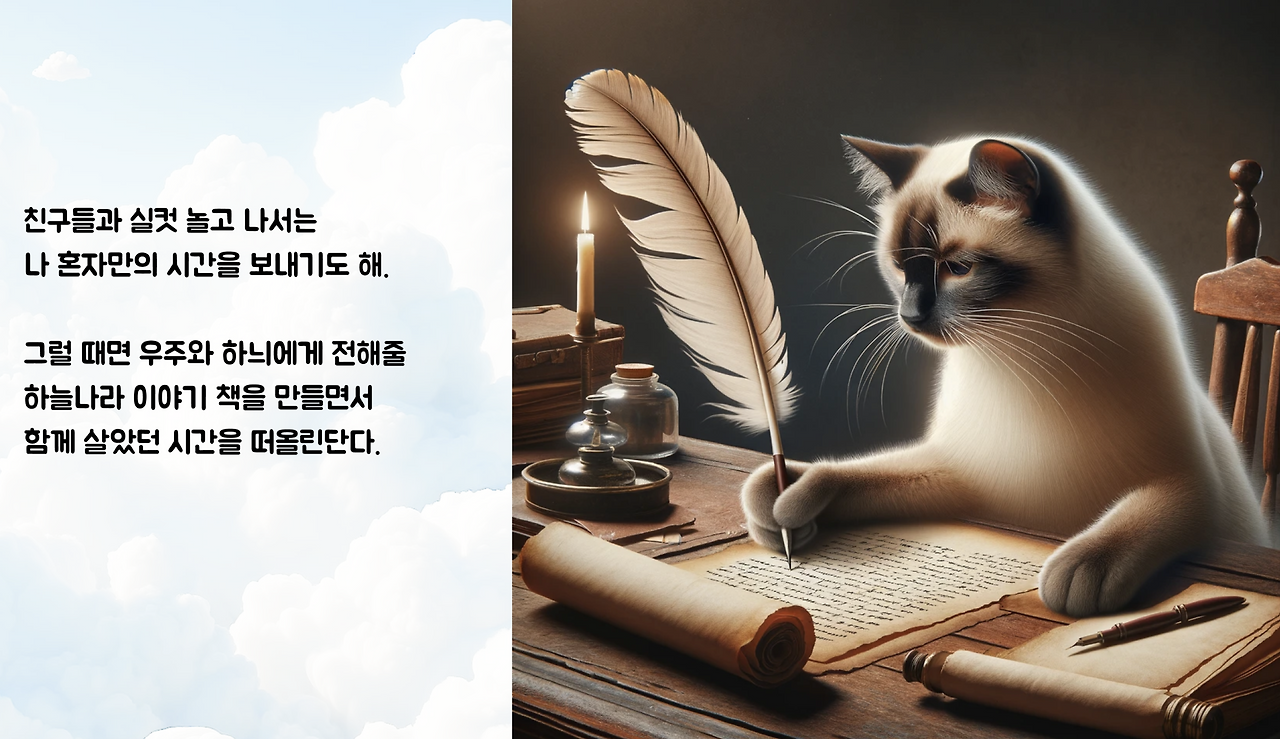 그래서 이번 이야기는 내가 직접 적기로 했다. 우주가 글씨를 좀 더 잘 읽고 많이 알게 되면 그때는 LLM과 함께 더 많은 이야기를 만들어보리라.