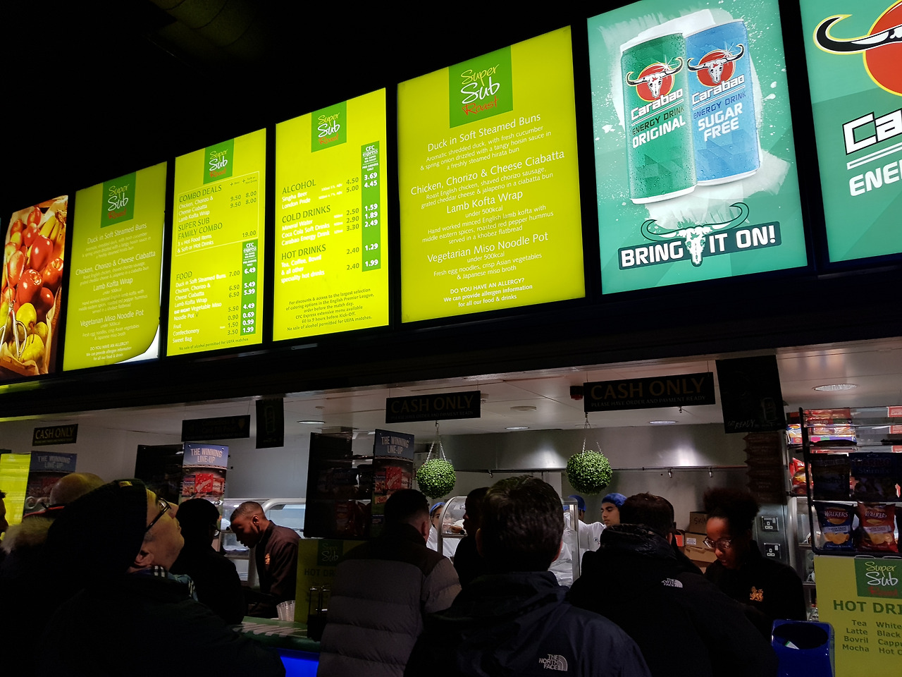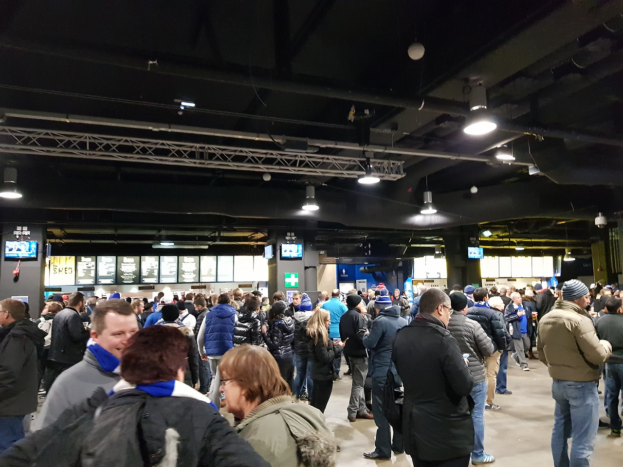 사실 경기장 내 홀에서 먹는 음식은 맛 보다는 그 분위기에 취해서 먹는 것 같다. 이곳은 허기를 달래기 위한 식당이라기 보다는, 경기 전 프리뷰 방송을 보며 삼삼오오 모여서 축구 이야기를 꽃피우는 목적의 공간이다보니 정말 시끄럽고 정말 복잡하고 정말 영어영어 축구축구 한 곳이다.