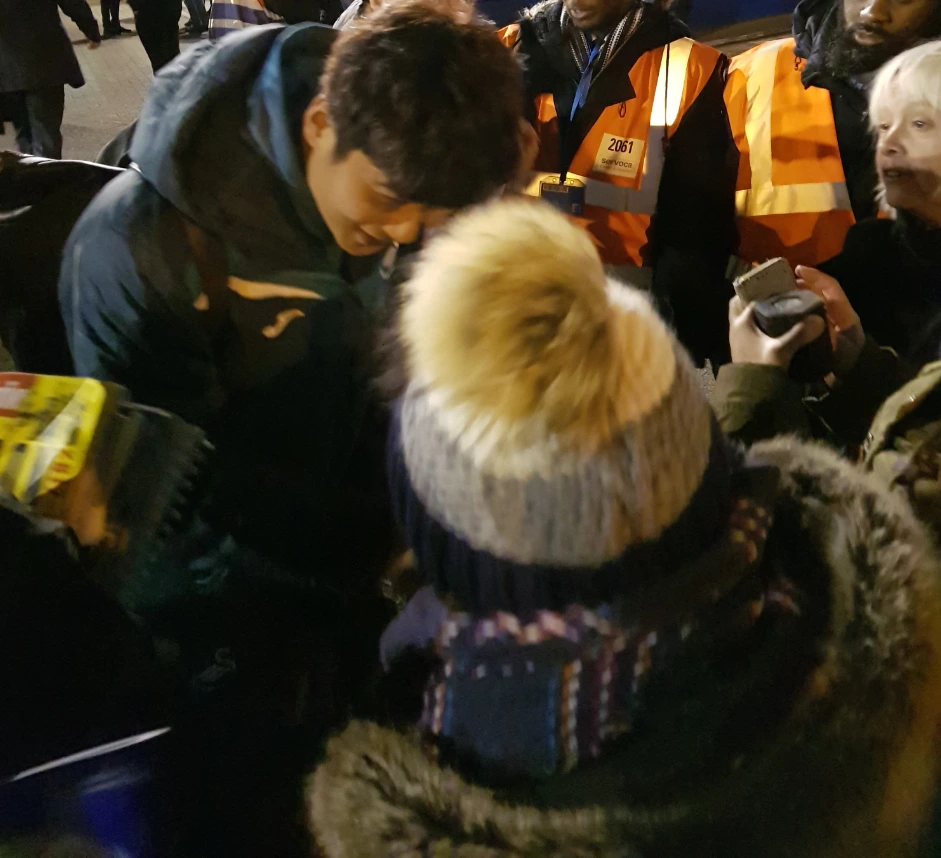 대부분의 선수들은 경기에 패한 날은 어웨이 버스 옆에서 팬들이 기다리든 날씨가 어떻든 신경쓰지 않고 (적어도 겉으로 보기에는) 바로 버스 안으로 들어가버리는데, 기성용 선수는 조금 다르다. 누군가 자신의 이름을 부르는 게 들리면, 그게 한국어든 영어든 고개를 돌려 쳐다보고, 손에 짐이 있을 때는 버스에 놓고 다시 내려오겠다는 표현을 한다. 그리고 어린 아이들부터 차례대로 돌아가며 사진을 찍고 사인을 해주며 아이컨택과 진심이 느껴지는 미소도 잊지 않는다.