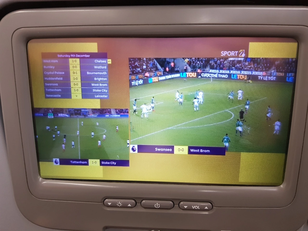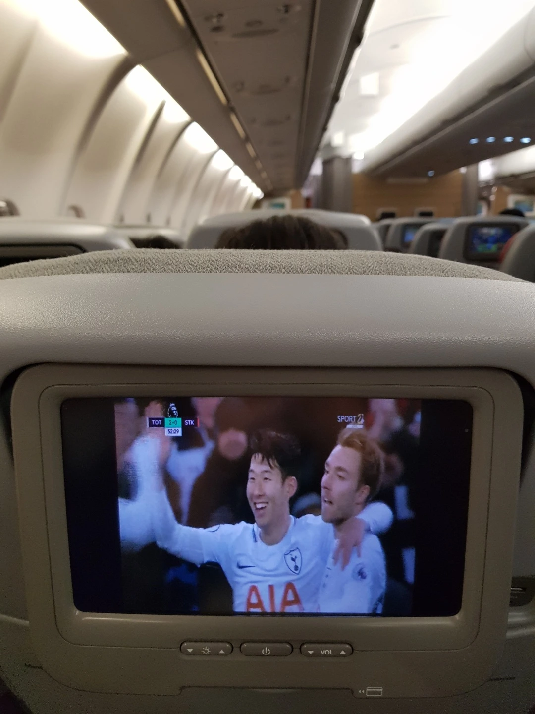 비행기에서 CNN 등 일부 해외 방송을 생중계로 볼 수 있다는 건 알고 있었지만, 이렇게 프리미어리그 경기를 해발 10,000m 상공에서 보게 될 줄이야..게다가 그 경기가 무려 손흥민이 선발 출전해서 득점까지 기록한 경기였다.