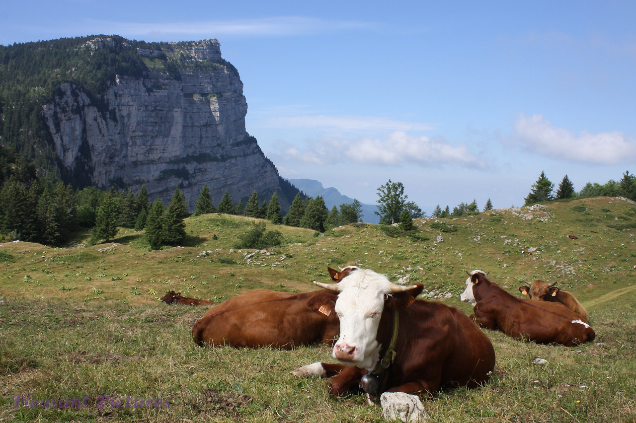 산등성이에서 한가로이 풀을 뜯거나 여기저기 아무렇게나 널부러져 있는 건강하고 맛있어 보이는 알프스 소들. 골짜리마다 울려퍼지는 은은한 방울 소리도.