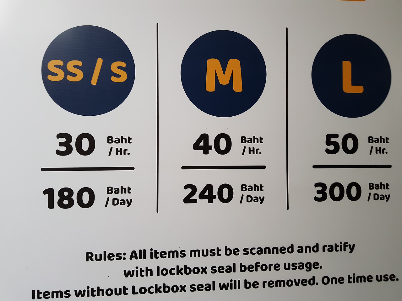 L큰 사이즈는 시간 당 50바트 (약 1,680원) / 하루에 300바트 (약 1만원)