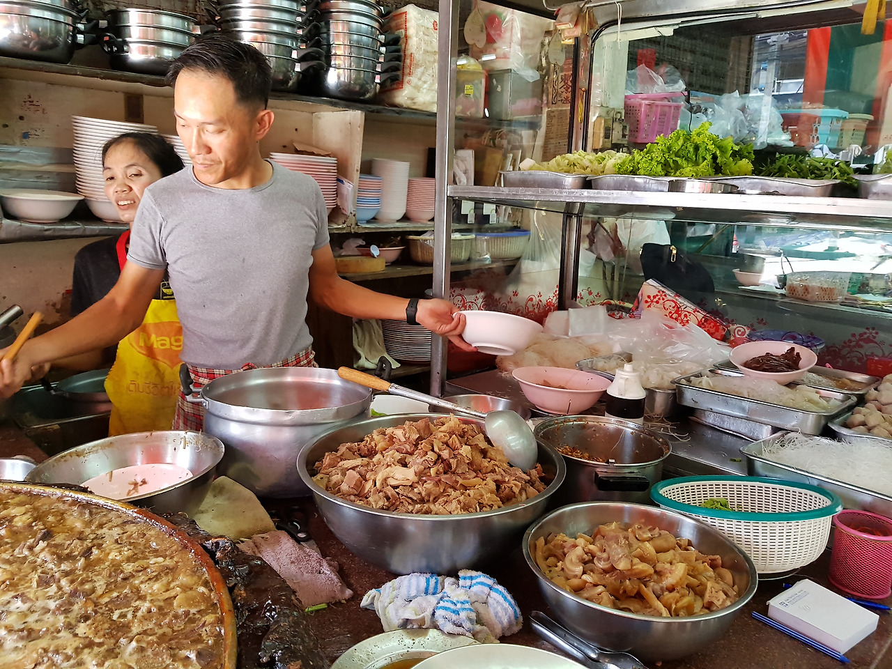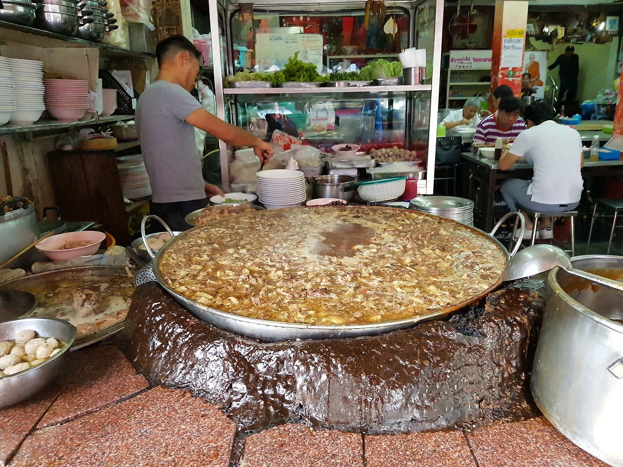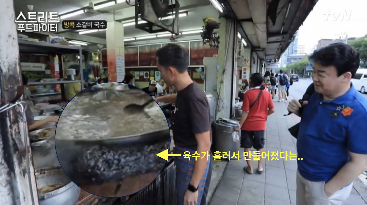 사실 태국을 여행하다보면 소고기쌀국수 식당이 길가에 흔해 빠지게 많은데, 이 식당이 스트리트 푸드파이터에 소개되고, 한국에서 백종원 소고기쌀국수로 알려질만큼 유명해지게 된 건 아무래도..멈추지 않고 쉼없이 끓이는 육수가 만들어 낸 두꺼운 턱(?)의 비주얼 때문이 아닐까..?