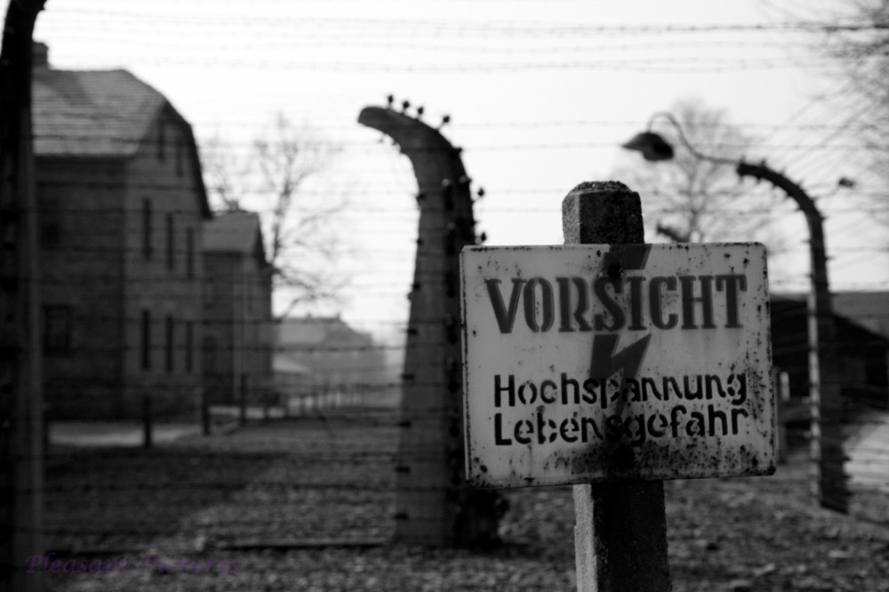 유대인들이 감히 탈출할 엄두도 내지 못하게 했던 고압전선 주의 팻말.