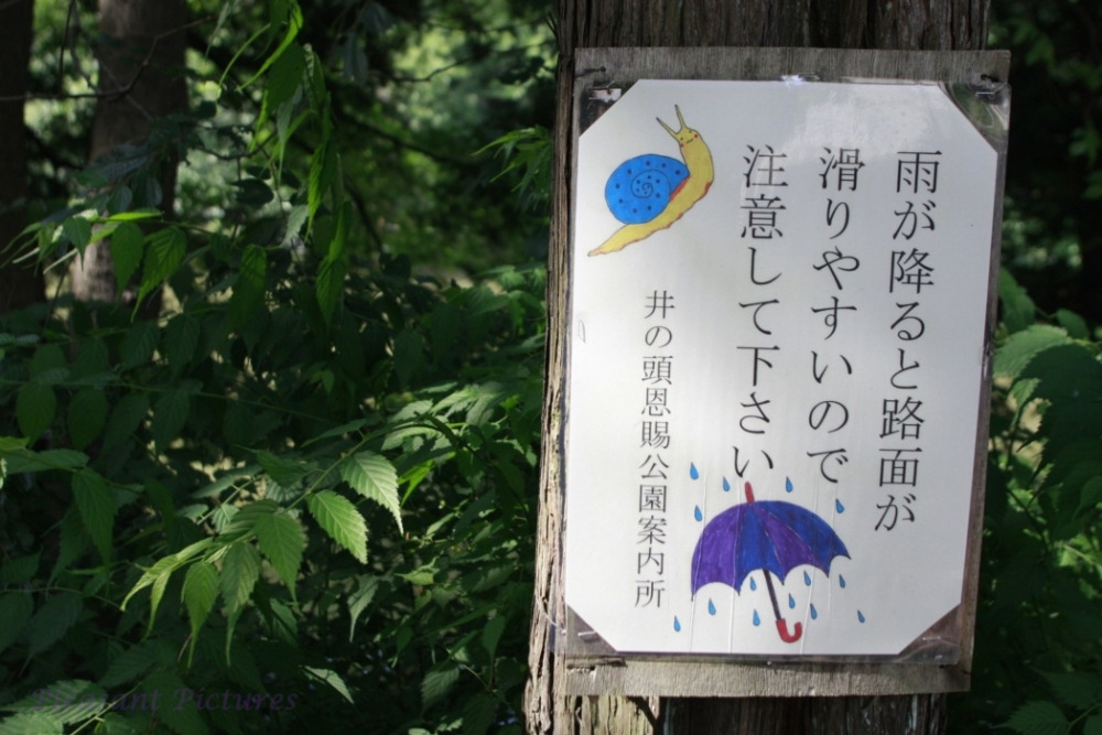 달팽이와 비 맞는 우산이 함께 등장하는 표지판을 보며 이 사진을 찍은 뒤 주위에 일본어 잘하는 사람 있으면 도대체 무슨 뜻인지 꼭 한 번 물어보겠다고 생각했던 게