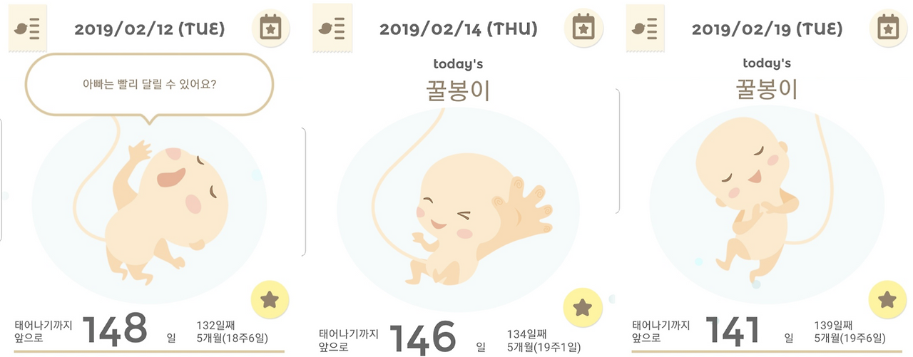 출근 길 버스 안에서, 회사 화장실 변기에 앉아서, 또 퇴근 길 버스 안에서, 임신/출산 경험이 있는 부부라면 모두가 알고 있는 어플을 켜고 뻔한 내용을 읽고 또 읽는다. 그리고 어플 속의 태아 이미지가 실제 내 아이인 냥 믿으며 조금이라도 다른 모습의 이미지를 발견하면 바로 캡쳐 버튼을 누르고 아내에게 공유하며 서로 키득키득 거리곤 한다.