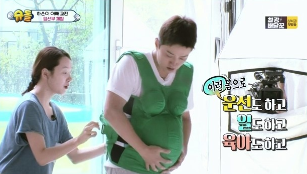 당신이 뱃속에 무거운 아이와 양수를 품고 힘들게 생활하고 있으니, 나도 똑같은 무게의 체험복을 입고 불편하게 생활하면서 당신의 고통에 공감하면서 지내볼게.
