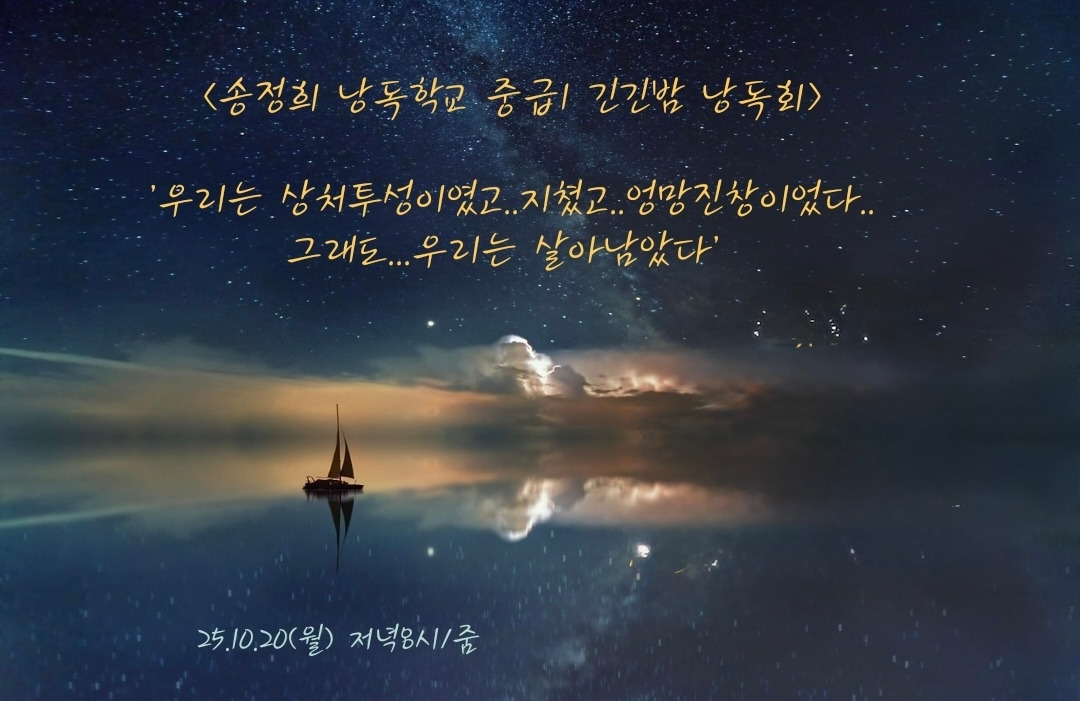 비록 아직 낭독을 연습할 때만 쉼과 침묵, 그리고 몰입을 경험했지만 언젠가는 일상에서도 멈춤과 침묵의 순간을 경험해 볼 수 있지 않을까 기대가 된다.