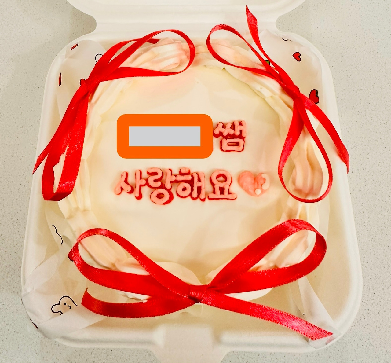 그런데 5월은 무려 스승의 날이 있는 달이 아닌가. 딸의 준비가 만만치 않았다. 내신시험 기간이었는데 아무래도 내신준비보다 스승의 날 준비를 더 많이 한 느낌이다. 아이들에게 예쁜 쪽지를 건네 선생님에게 드릴 편지를 하나하나 받아서 롤링페이퍼를 꾸민 것은 물론, 꽃다발에 수제 레터링케잌까지 주문하여 만반의 준비를 갖추었다. 짜잔.