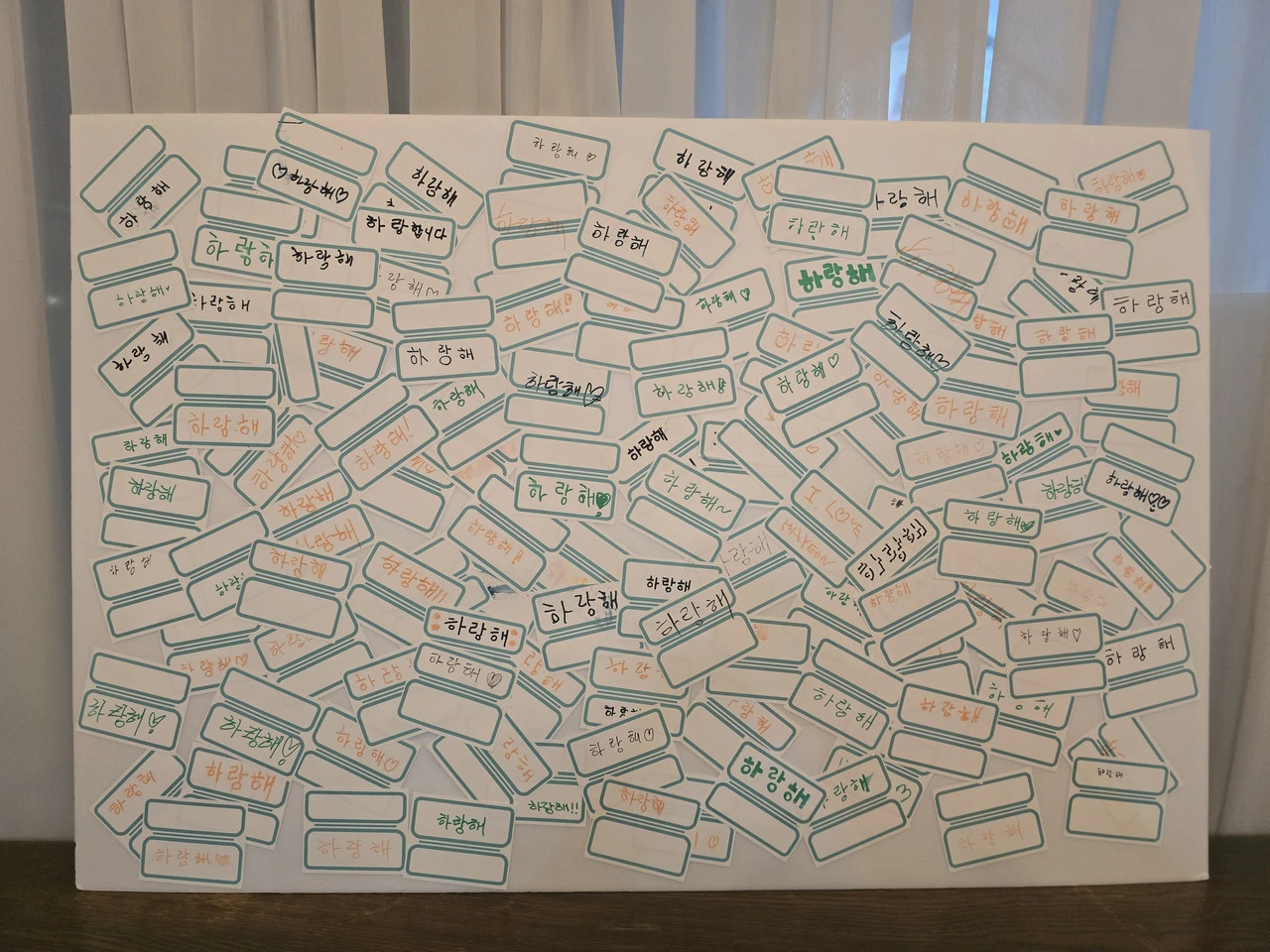 그렇게 설치물이 가시화되고, 해당 시리즈에서 앞으로 적을 글에 상세하게 적겠지만, 설치물 앞에 그 간단한 요청 사항과 펜, 리무버블 스티커만 놓고 별도로 구술 설명하지 않았다. 그럼에도 찾아온 팬들은 ‘하랑해’를 스티커에 적어서 붙였다. 이 와우포인트는 추후 팬들의 생일 카페 후기에서도 자주 언급되었다. 그만큼 기억에 남을만한 ‘순간’이었던 것이다.