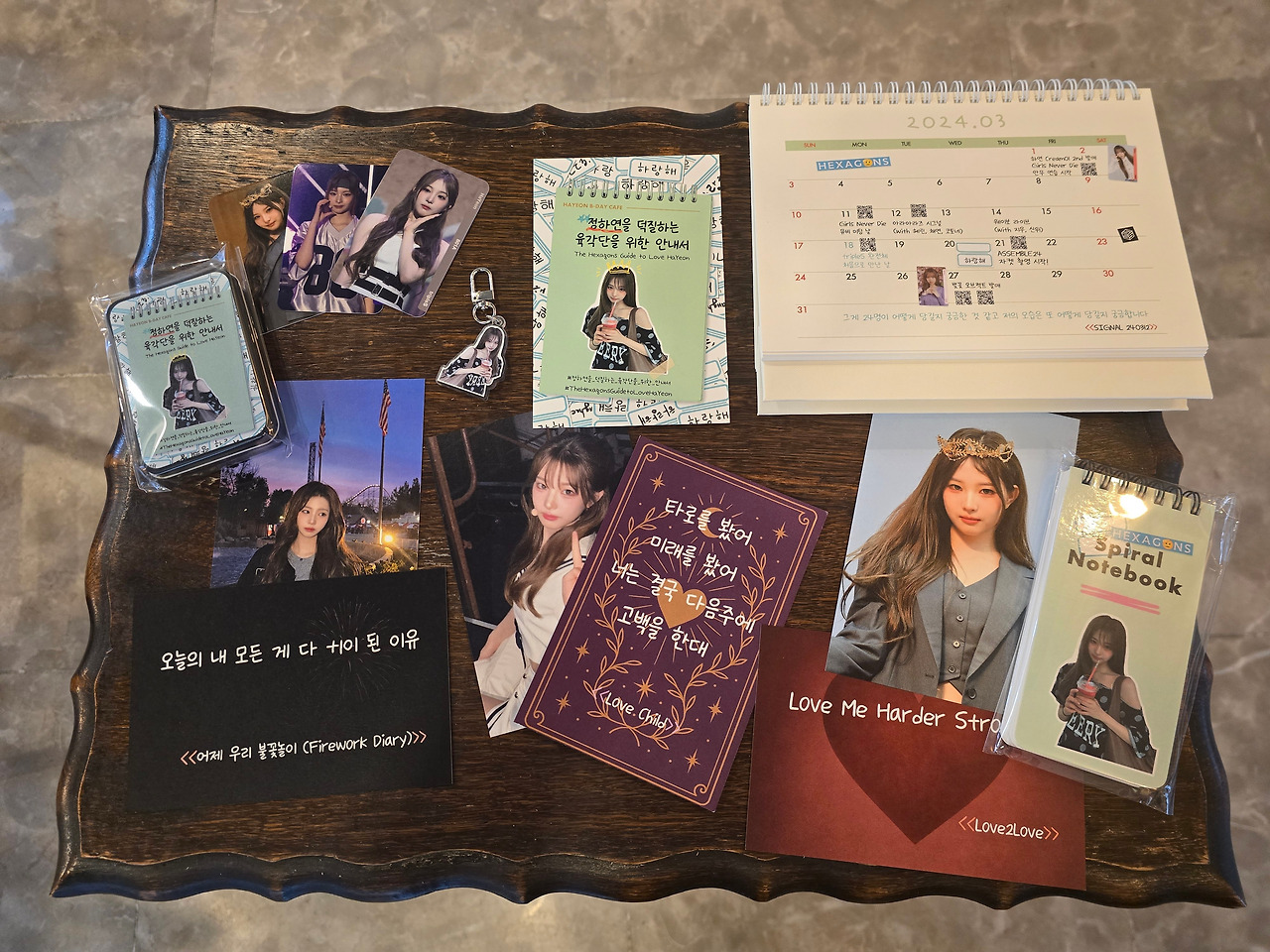디자인으로 제일 먼저 제작 완료된 사항이었다. 이미 홍보 과정에 제작된 ‘오브젝트’와 저번에 언급했던 ‘스핀 카드’는 레드프린팅에서 주문했고, 잘 활용하였다. 하지만 새로 준비하는 오브젝트는 조금 더 두꺼웠으면 했다. 팬이 만든 것이 아닌 공식 포토카드는 약간 두꺼운 재질을 가지고 있는데, 그에 준하는 질감을 구현하고 싶었다. 이 느낌의 포토카드는 스냅스가 할 수 있기 때문에 스냅스에서 3종류의 포토카드를 새로 발주했다. 그리고 받아본 포토카드는 두껍고 좋았다.