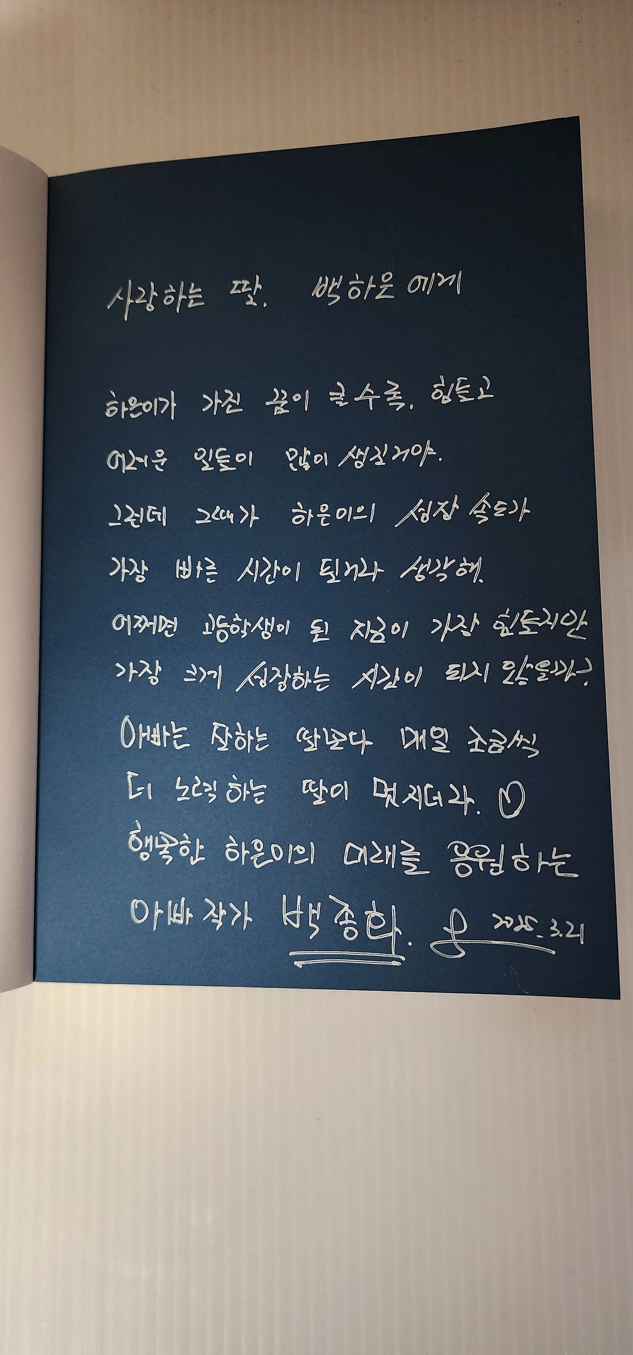 이번에는 어떤 글을 써서 선물할까? 라고 생각하고 나서 저자이자 아빠의 사인이 담긴 글을 쓰기 시작했습니다.