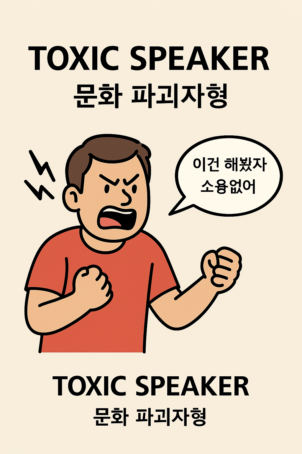 Toxic Speaker가 가진 강력한 부정적 영향력에 대해서 말입니다. 한 책에는 Toxic Speaker 한 명이 팀의 동기부여 30%을 빼앗아 간다고 말하기도 합니다. 저 또한 비슷하게 생각합니다.