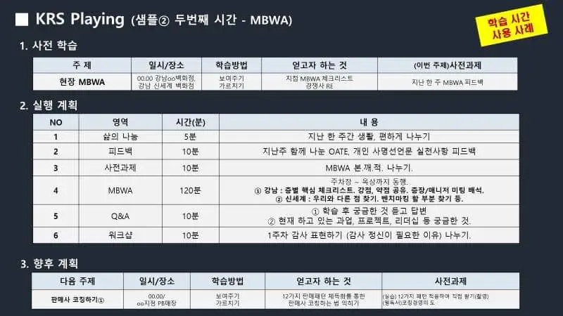 2) 후배가 바로 실행할 수 형태로 공유된다. 단, 실행의 책임은 후배에게 있다.