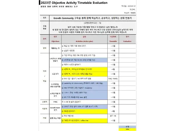 아직 7개의 목표를 찾지는 못했지만, 새롭게 찾은 목표가 8개, 수정한 목표가 6개입니다. 2023년에는 달성이 불가능한 Object로 시작해 볼께요