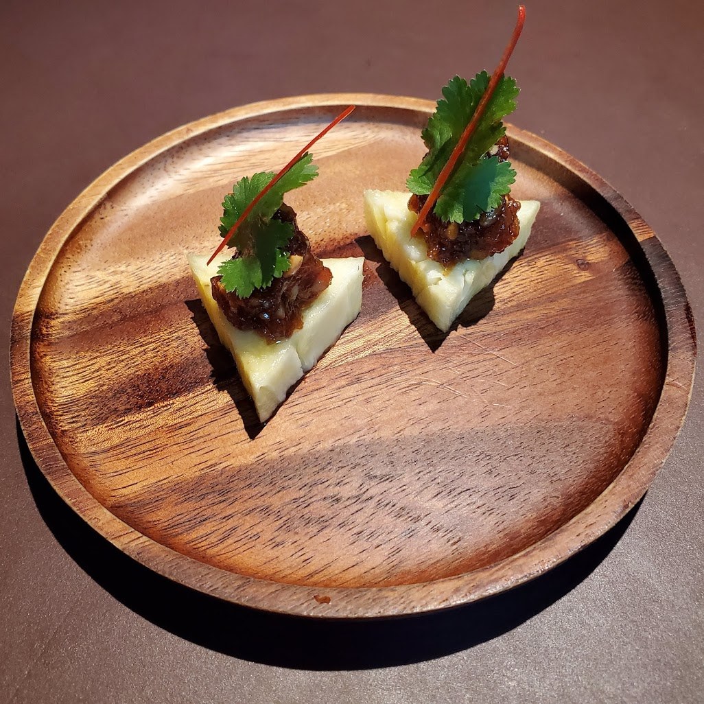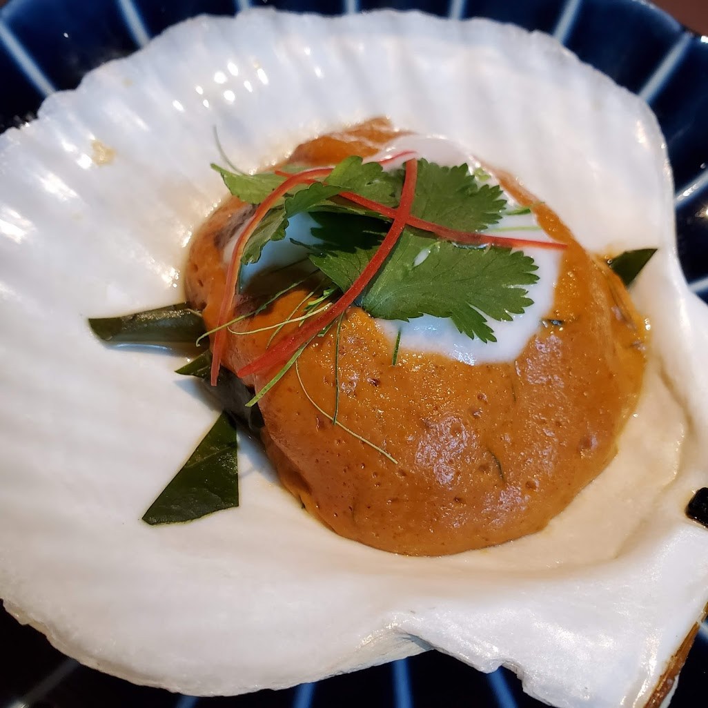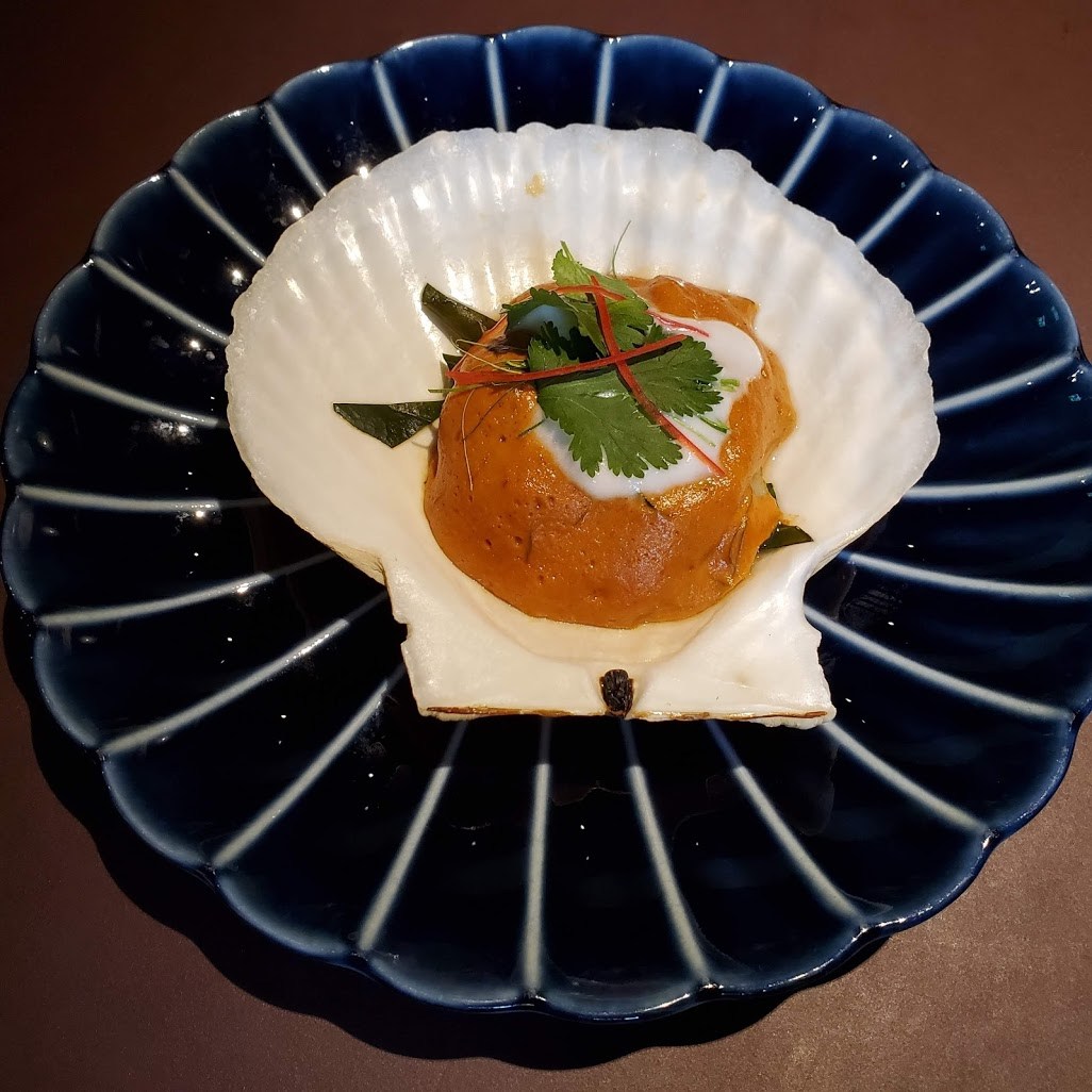 두 번째 애피타이저는 관자 위에 커리를 얹어 만들었다.
