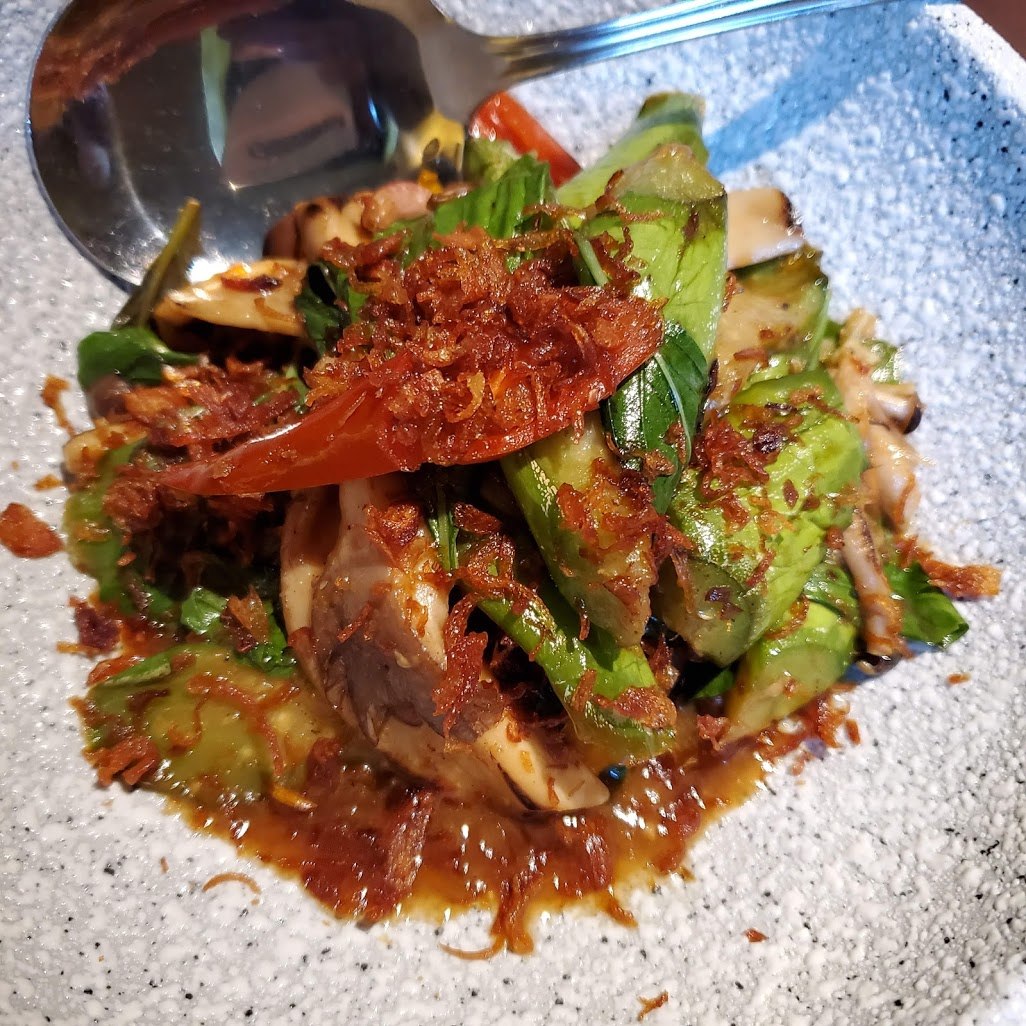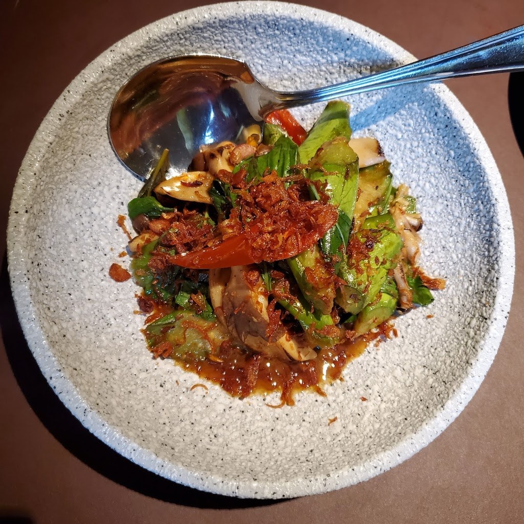 매콤하게 볶은 thai auberguine. aubergine이 뭔지 몰라서 찾아보니 가지였다. 초록색으로 생긴 가지이고, 식감은 우리가 아는 가지에 아삭함을 조금 더한 것.