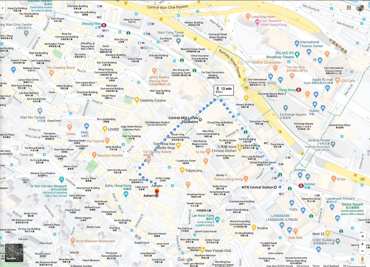 센트럴 역에서 나와서, 미드레벨 에스컬레이터를 타고 Tai Kwun 빌딩 쪽 출구로 나오면 바로 레스토랑이 보인다.