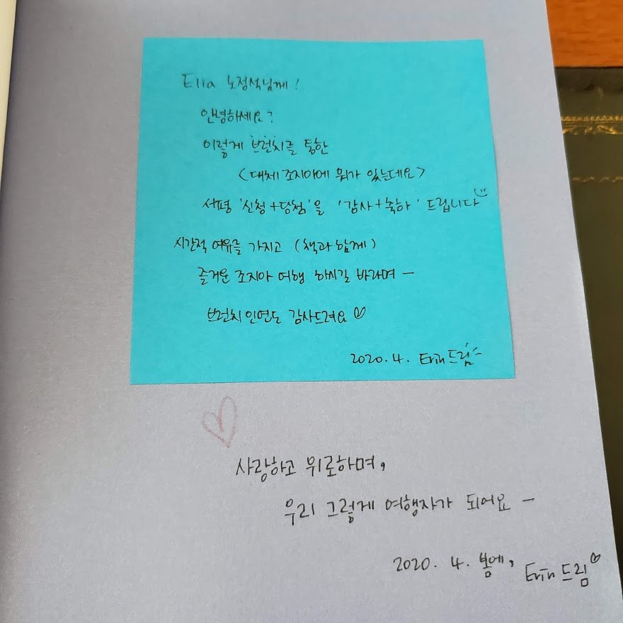 또한, 그냥 흘러갈 수 있는 경험을 문서화하고, 그걸 책이라는 상품으로 만들어서 다른 사람과 공유할 수 있게 되기까지 작가님의 노력이 엄청 투자되었을 것 같아서, 대단하기도 하고 부럽기도 했다.