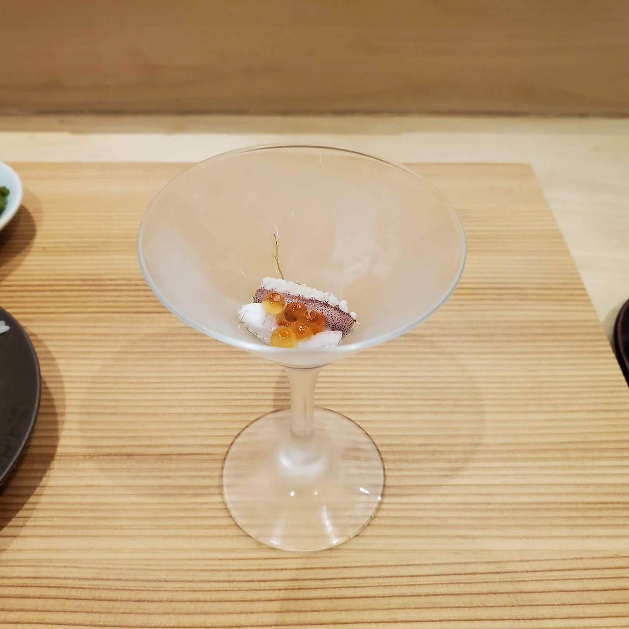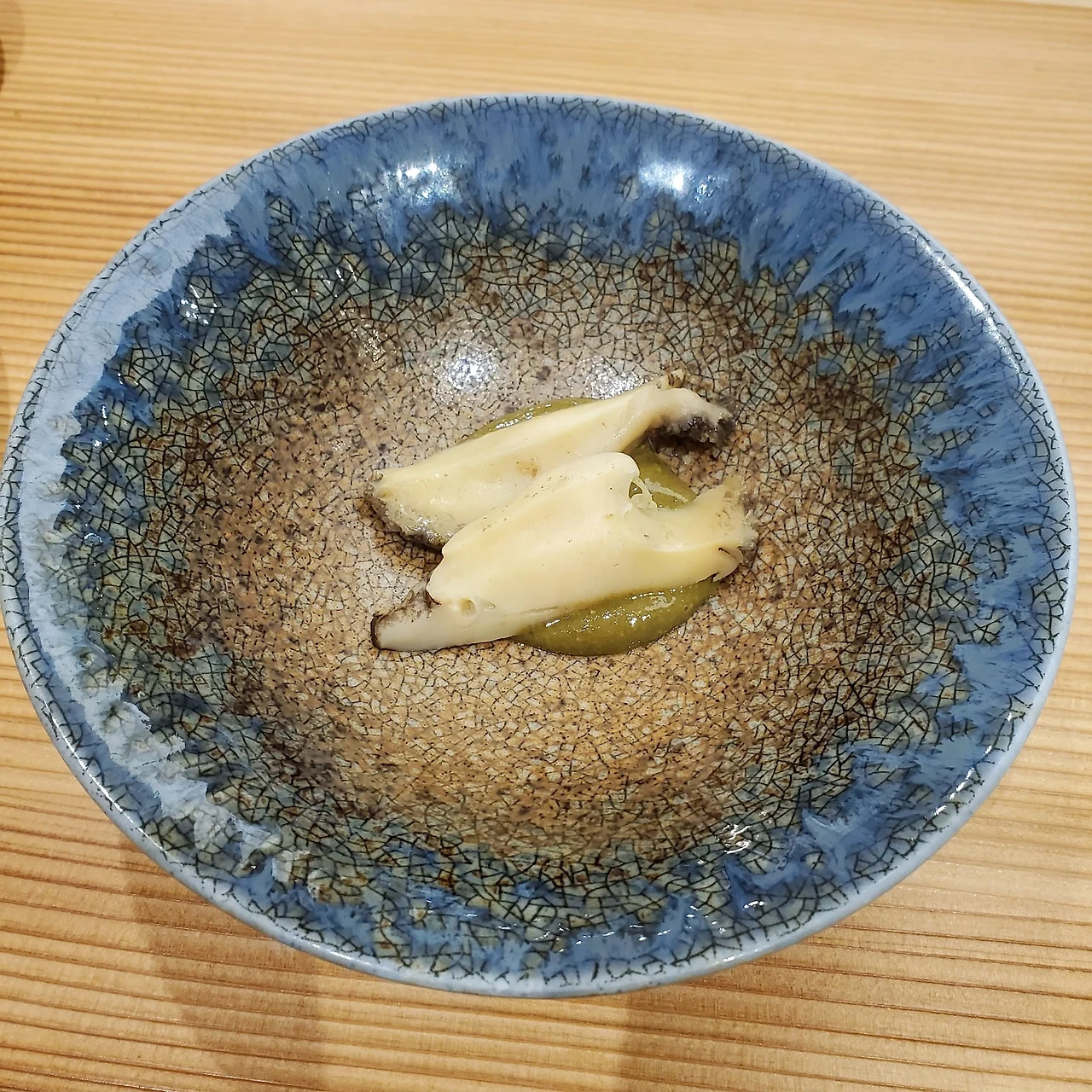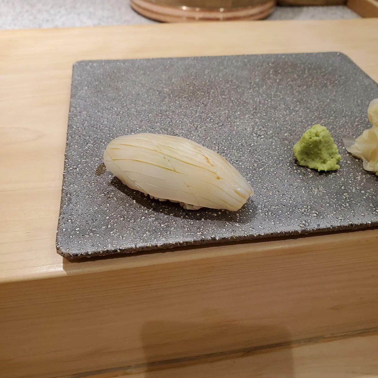 대화에 너무 열중하느라 무엇인지 잘 여쭤보지도 못했다 ㅎㅎ 대략 낙지 같은거 아니었을까 싶은데... 다음 스시는 줄무늬전갱이인가!? 아마도...