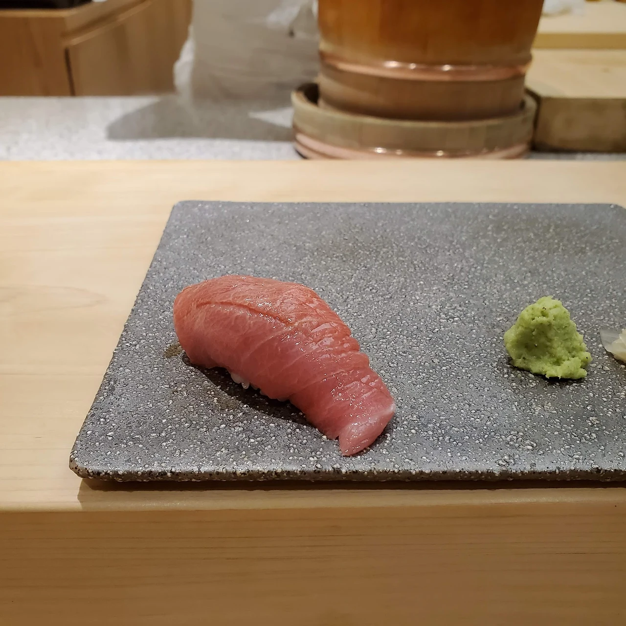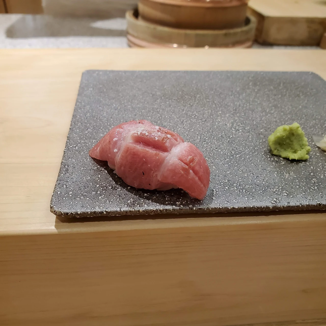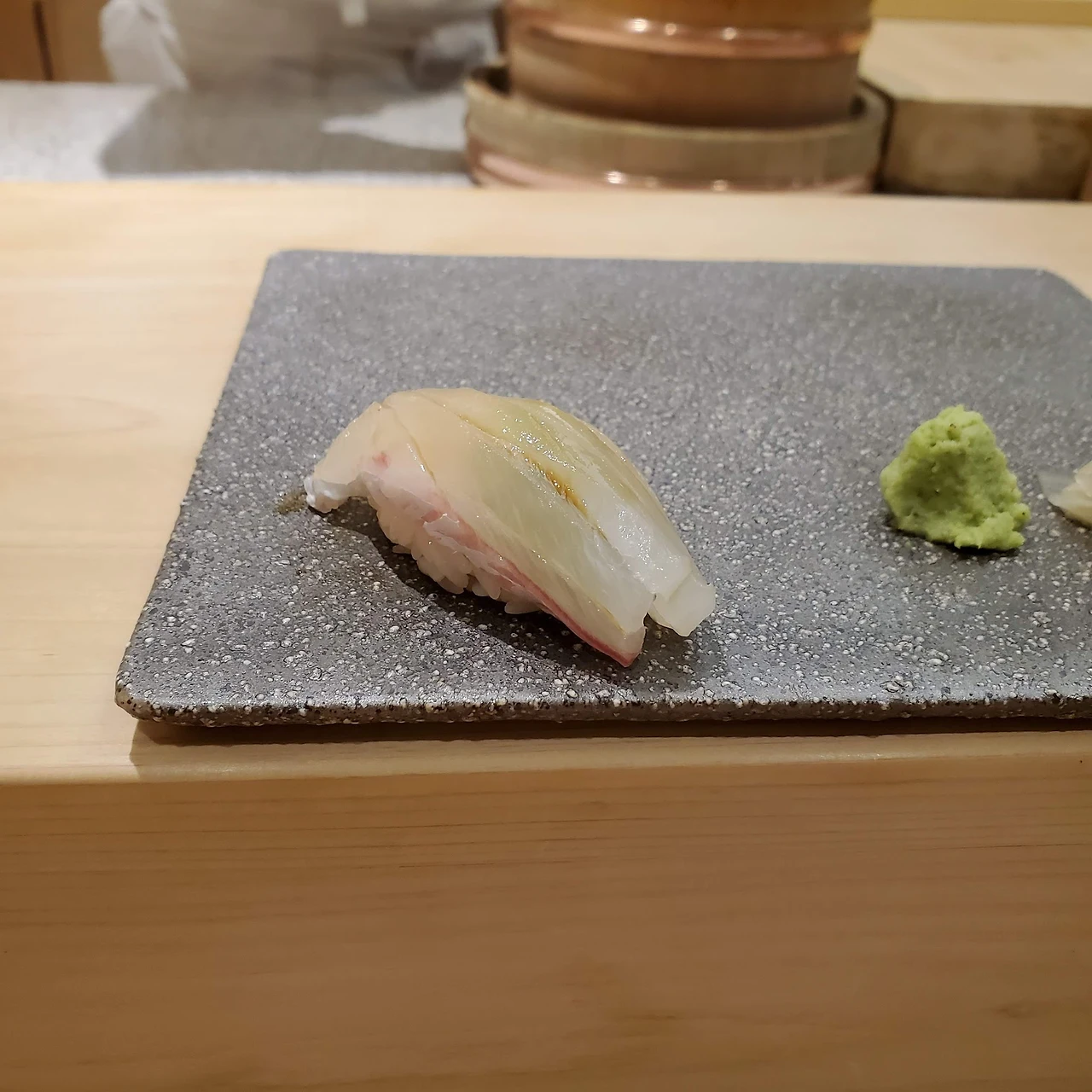 도미뱃살, 대뱃살, 그리고 전갱이.생선에 맞춰서 생강, 소금, 시소 등을 적절히 조합해주셔서 먹는데 거슬리는 것이 하나도 없었다. 균형이 훌륭했다.