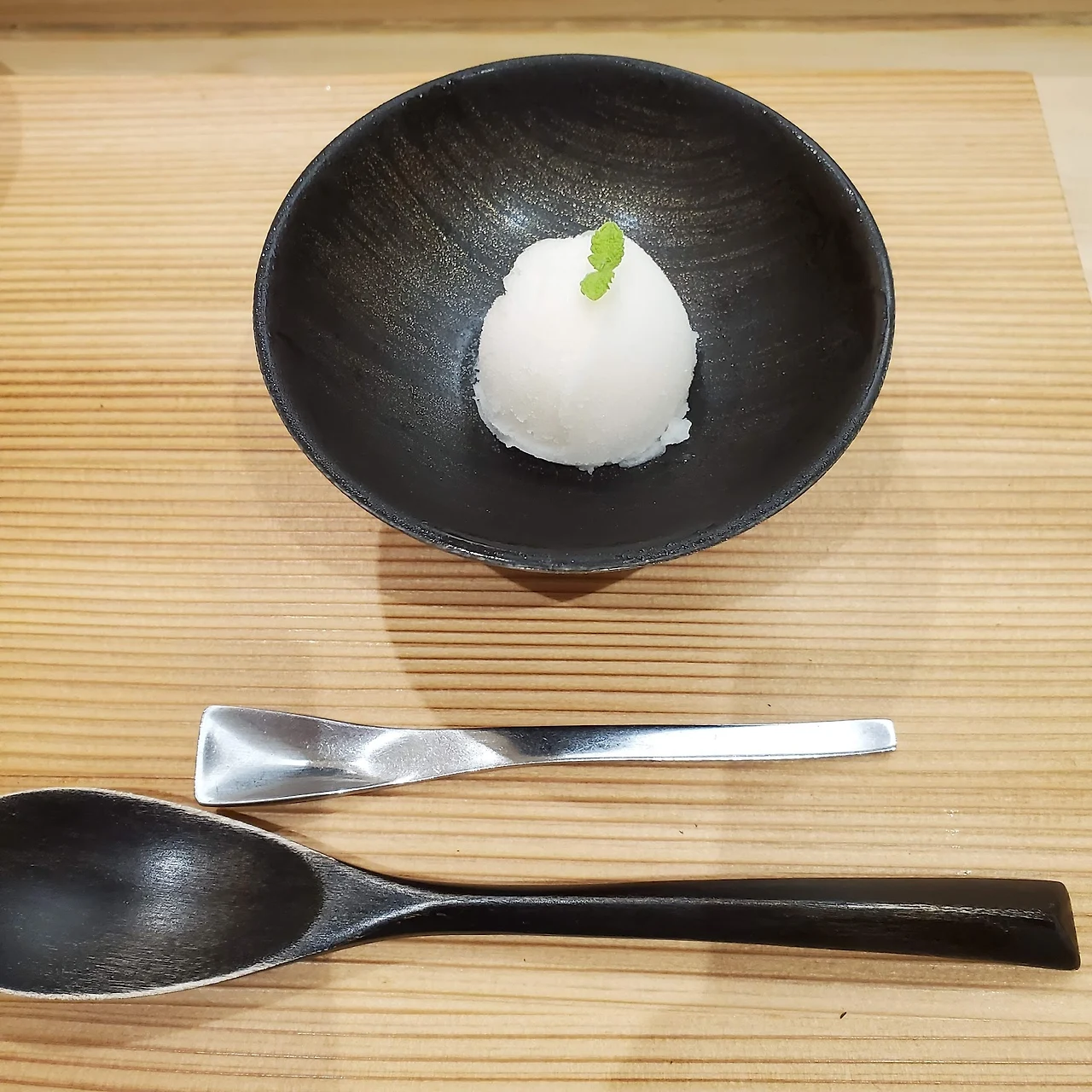 디저트는 복숭아 셔벗과 계란. 계란 위에 생선살 부분이 꾸덕하고 생선 식감이 느껴지는 점이 대만족이었다. 셔벗은... 셔벗 ㅎㅎ